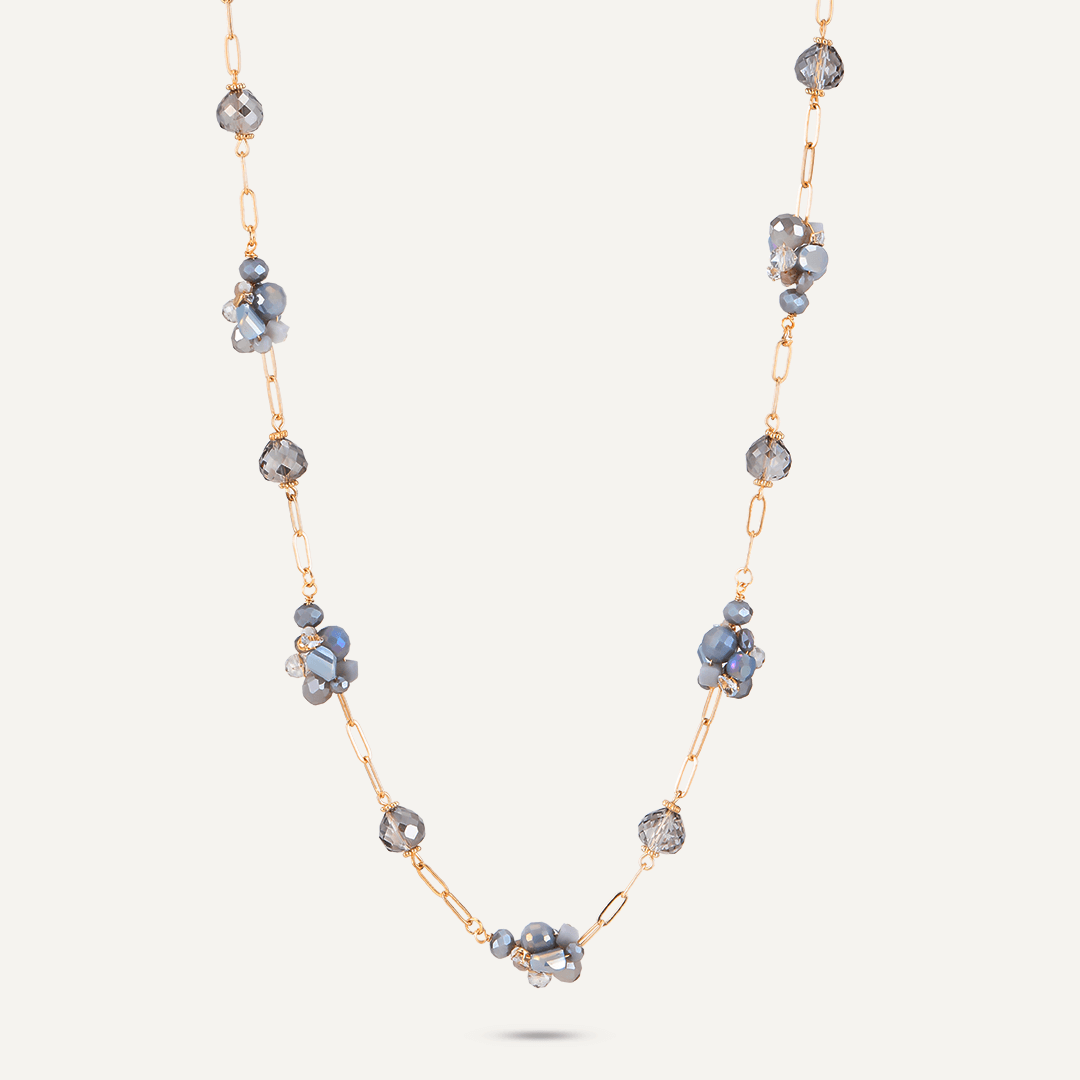 Grey Crystal Cluster Long Necklace In Gold-Tone
