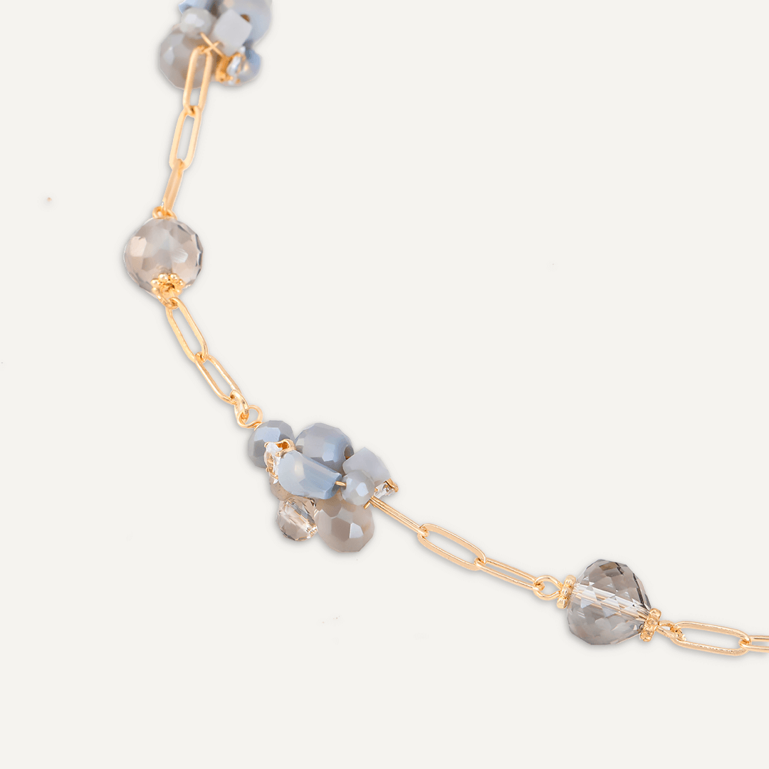 Grey Crystal Cluster Short Necklace In Gold-Tone
