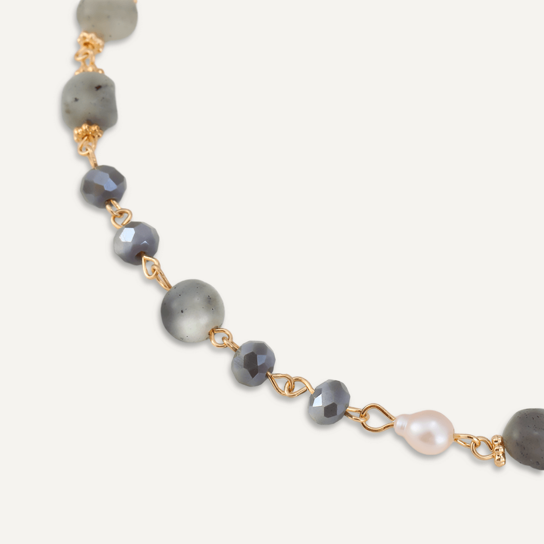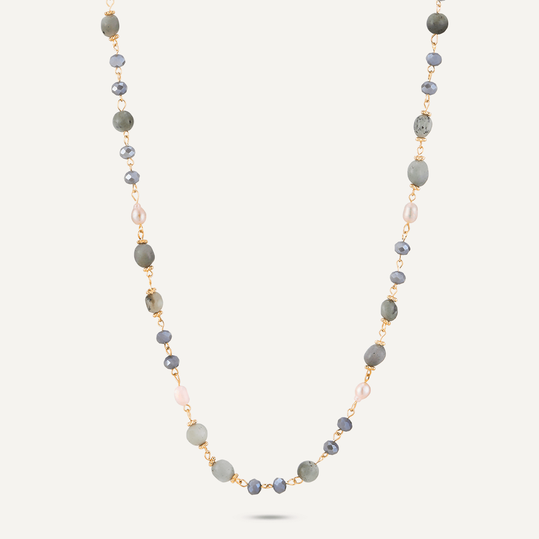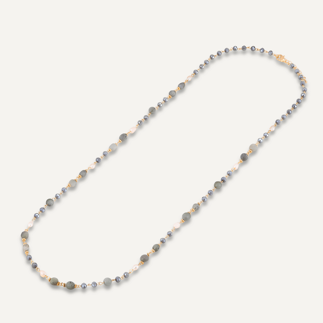 Grey Semi-Precious Stone, Crystal & Fresh Water Pearls Long Necklace In Gold-Tone