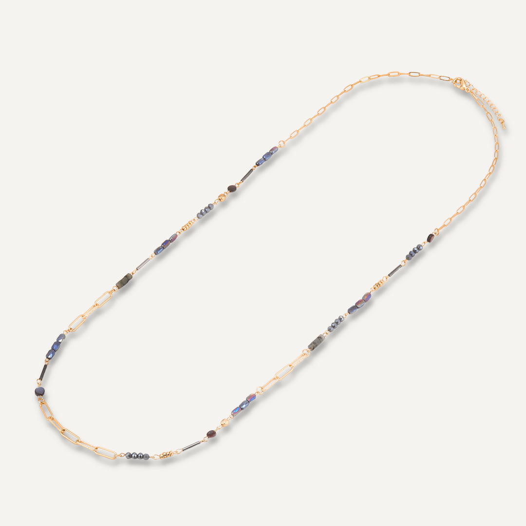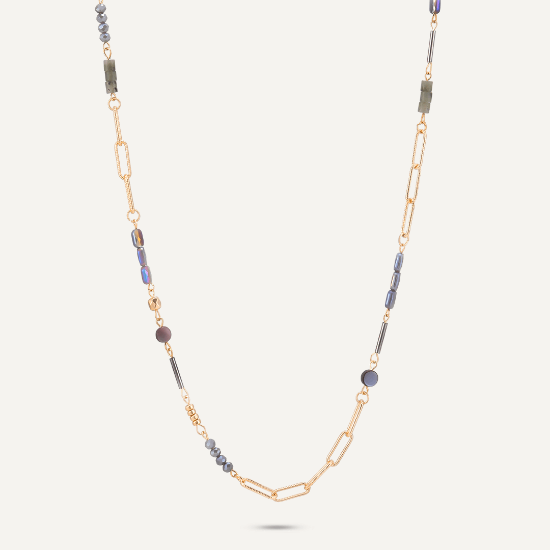 Grey Semi-Precious Stone Long Necklace In Gold-Tone