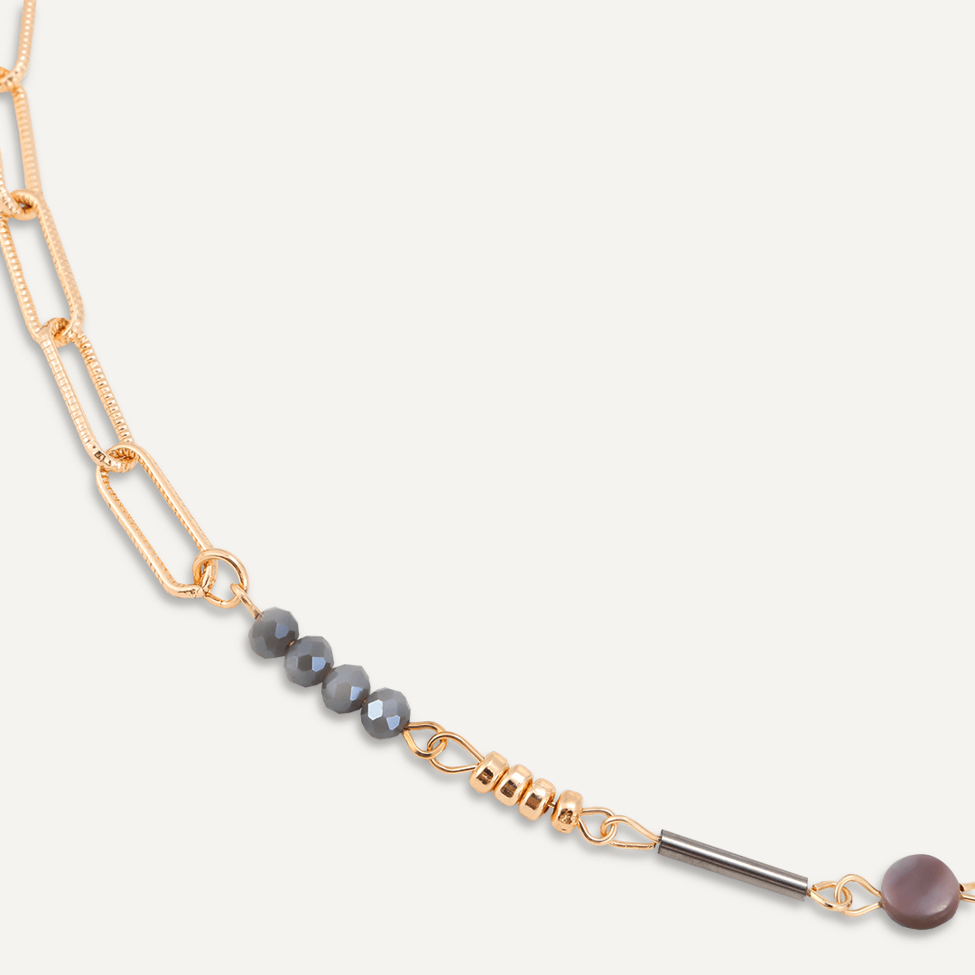 Featuring grey stones and crystals on a delicate gold-tone chain, this necklace adds charm to any outfit.