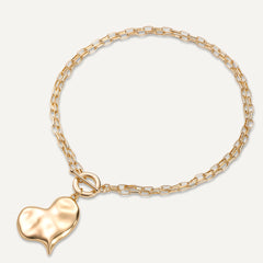 Featuring a chunky double-chain design, this bracelet showcases a beautifully crafted heart charm in a warm gold-tone, elegantly suspended from the stylish T-bar closure.