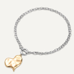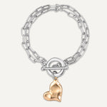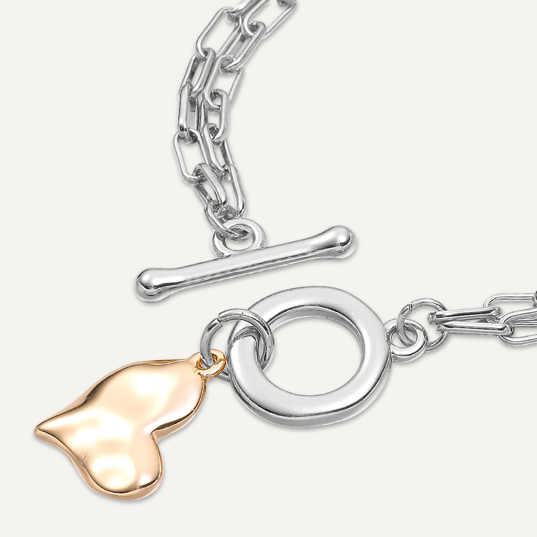 Heart Charm T-Bar Bracelet In Silver & Gold-Tone