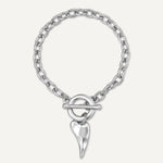 This bold bracelet features a chunky silver-tone chain with a striking silver-tone heart tusk charm, creating a captivating contrast. The T-bar closure adds a touch of vintage elegance while making it easy to wear.