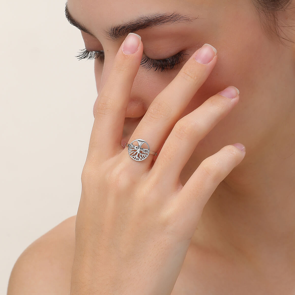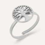 Keira Adjustable Tree Of Life Ring In Silver-Tone