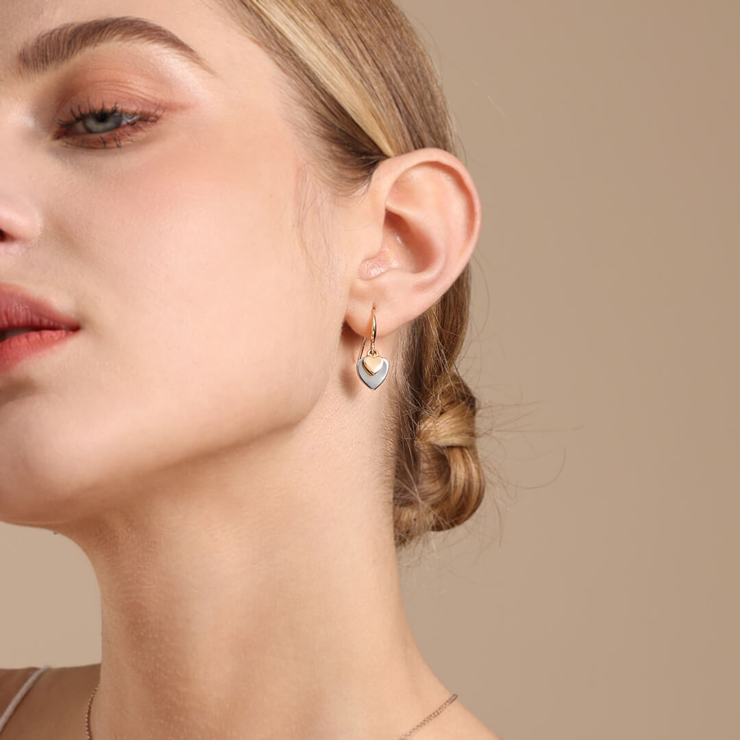A simple mixed metal design, the striking difference between gold and silver elevates this piece's subtle heart duo decorations, accentuating its eye-catching and modern elements. Perfect for almost all kinds of outfits, wear these earrings with pride!