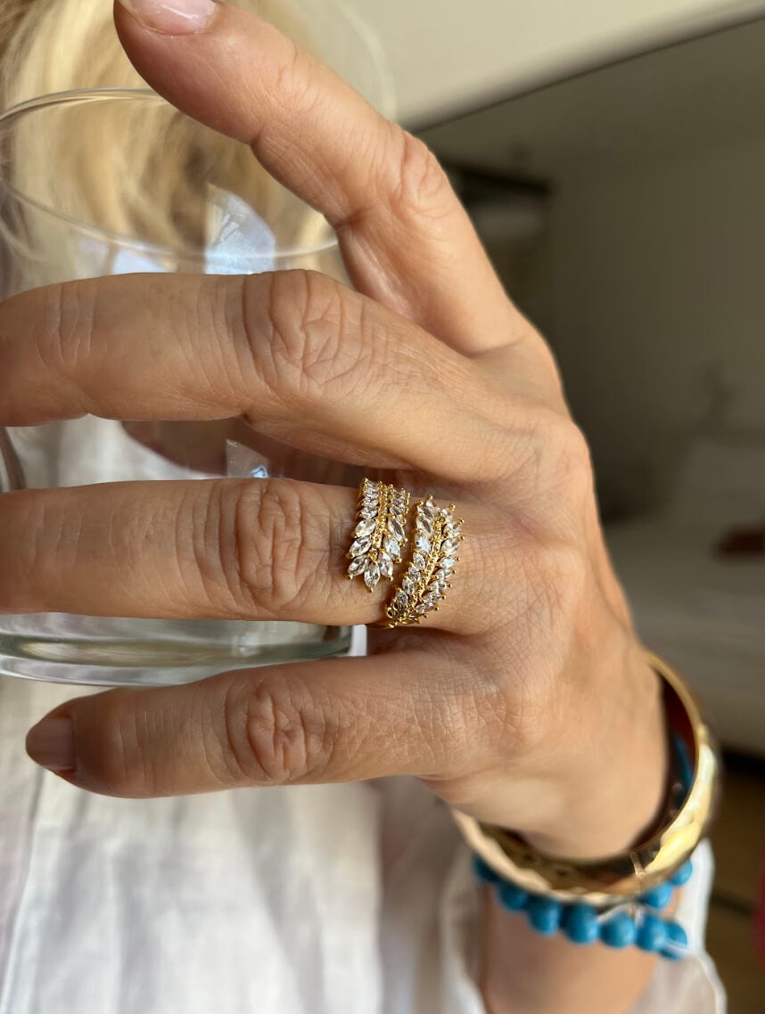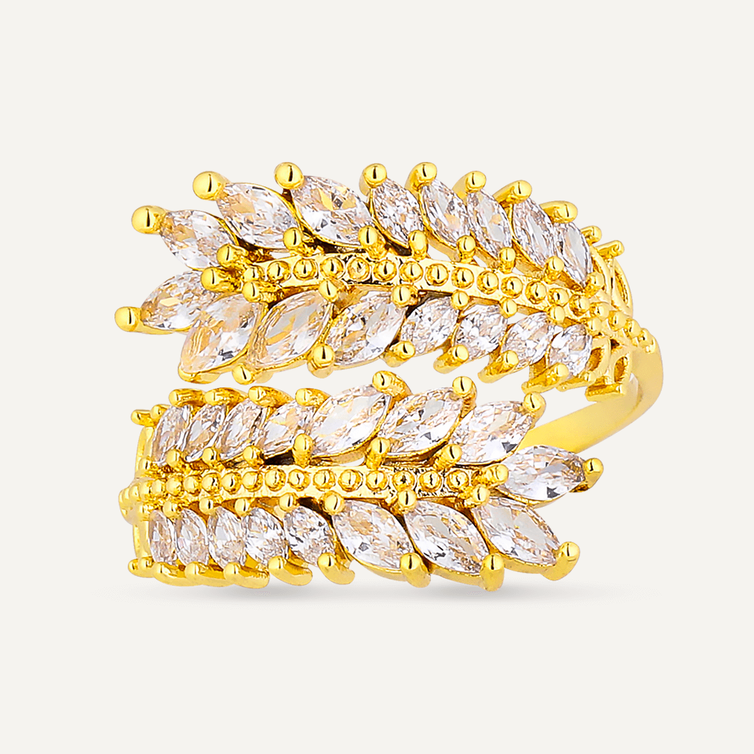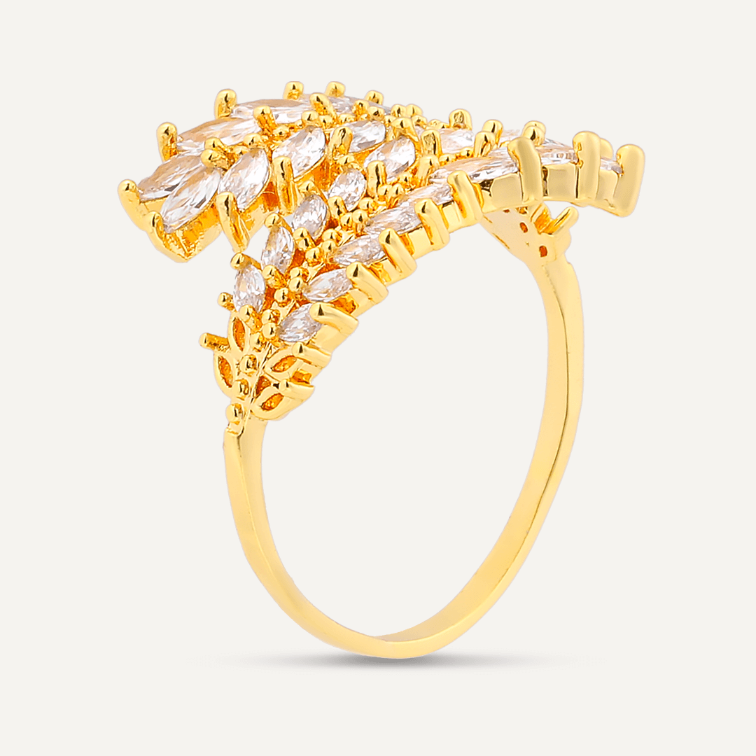 Kylie Cubic Zirconia Open Feather Ring In Gold-Tone