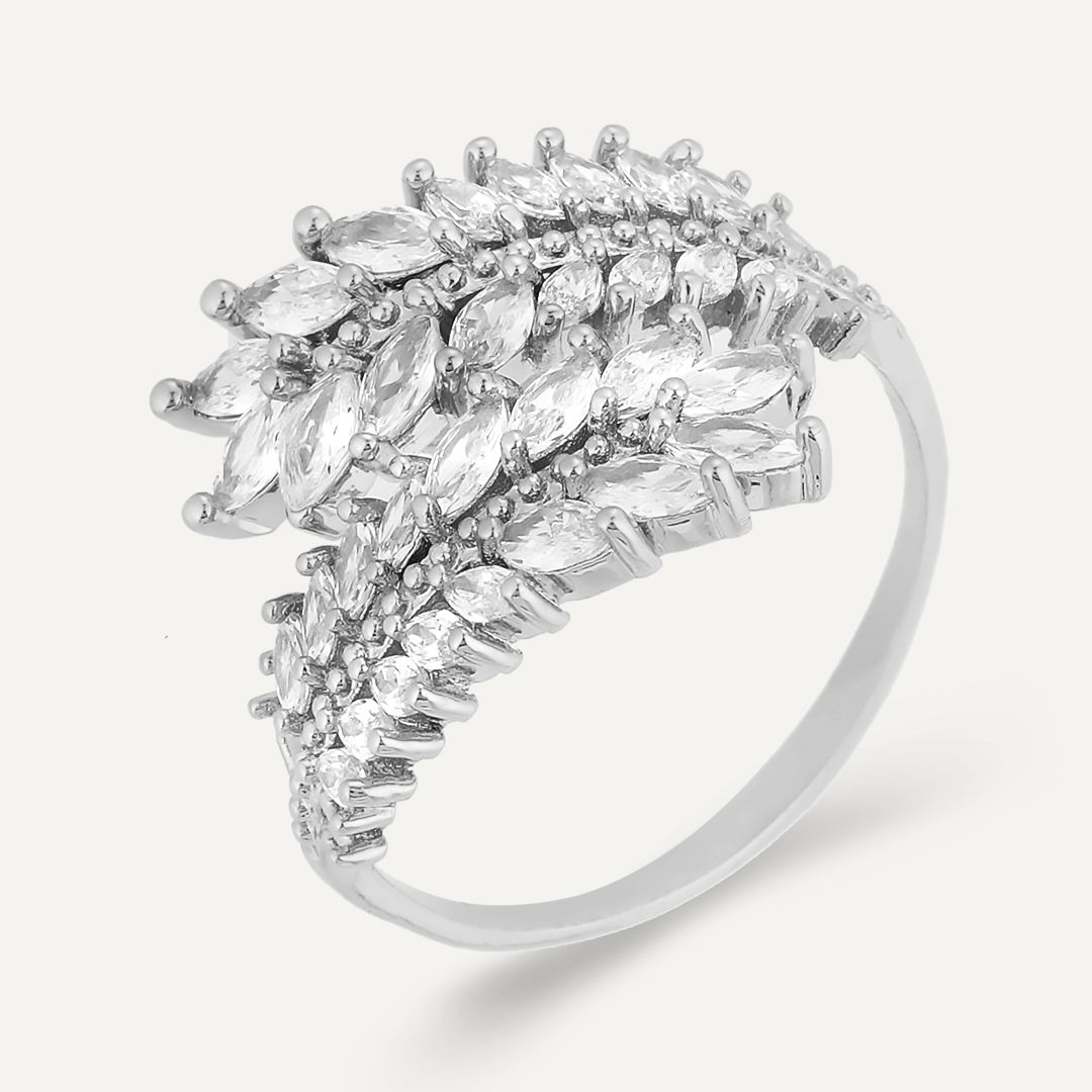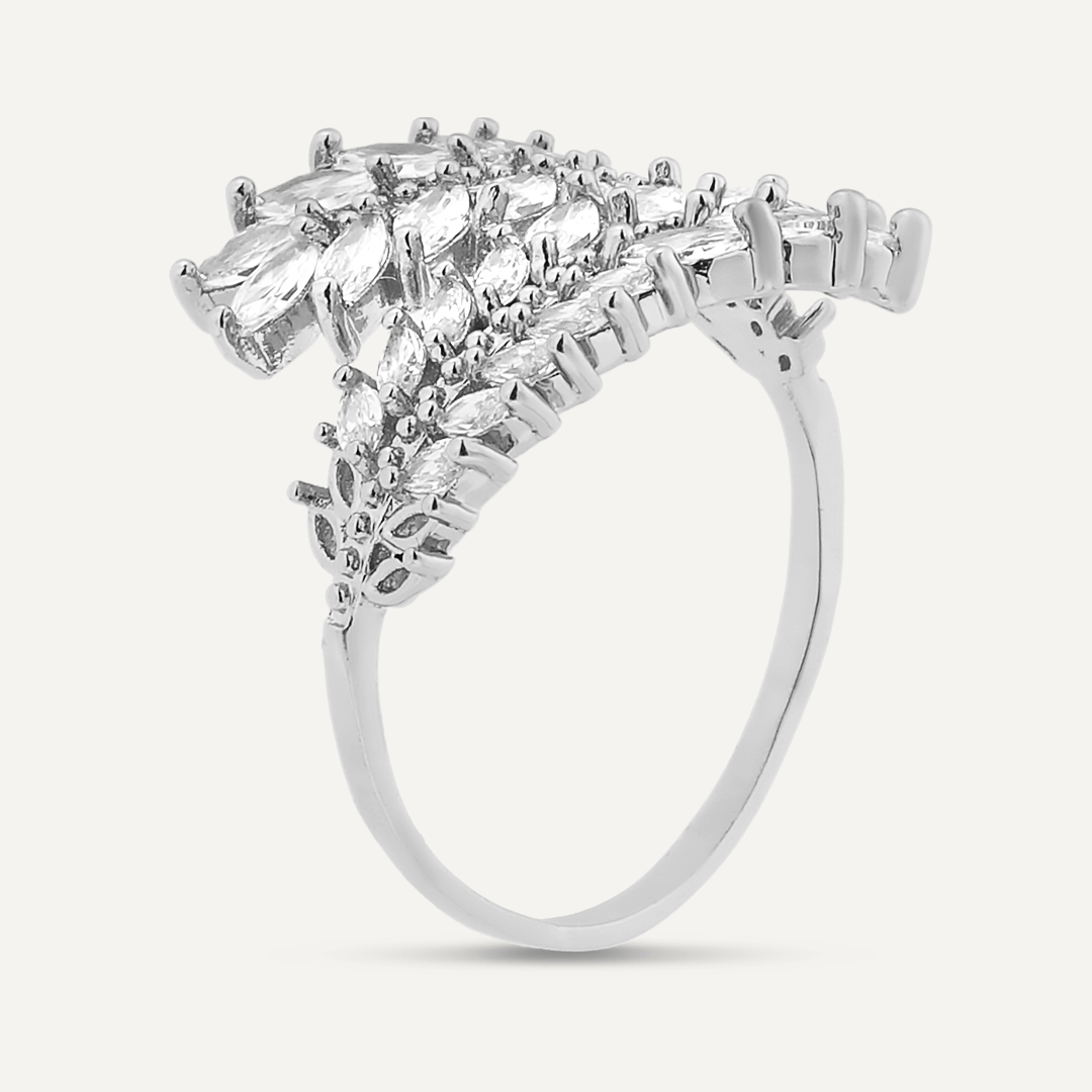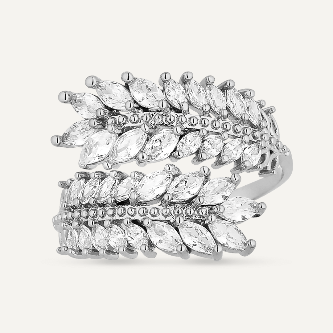 Kylie Cubic Zirconia Open Feather Ring In Silver-Tone