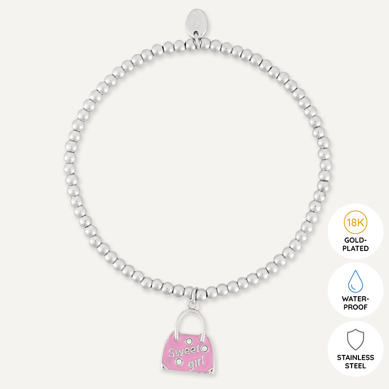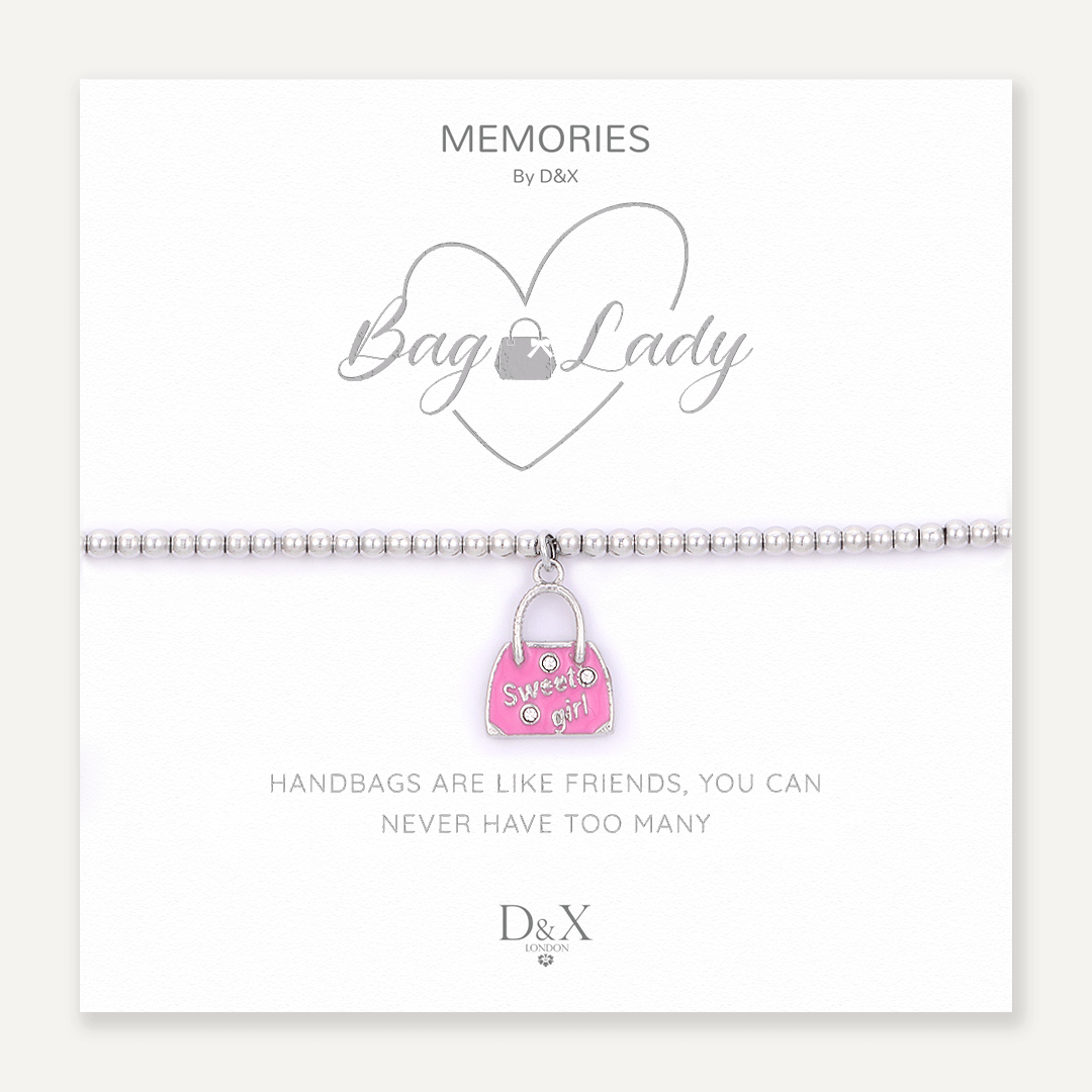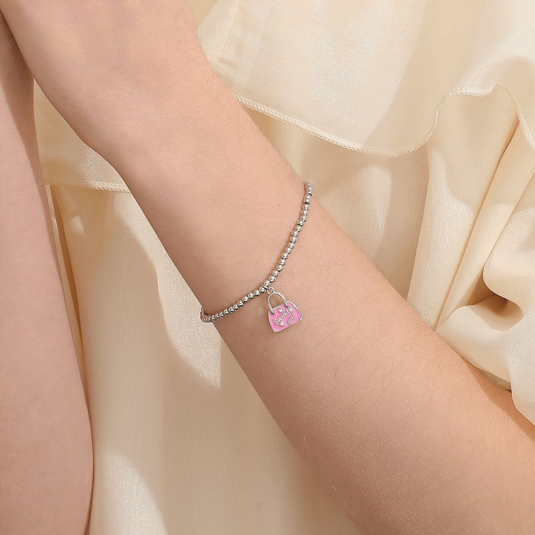 Memories: "BAG LADY" | Pink bag Bracelet | White Gold-Plated | Multi-Colour
