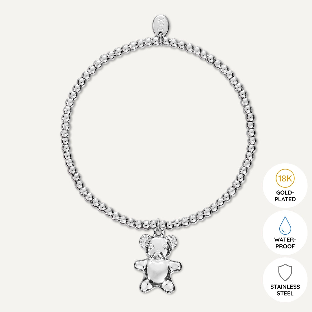 Embrace 'Bear Hug' through an enchanting bracelet crafted with elegance, a symbol of 'A little teddy to make you feel the warmth of my love whenever I’m not around!' in White Gold Plated
