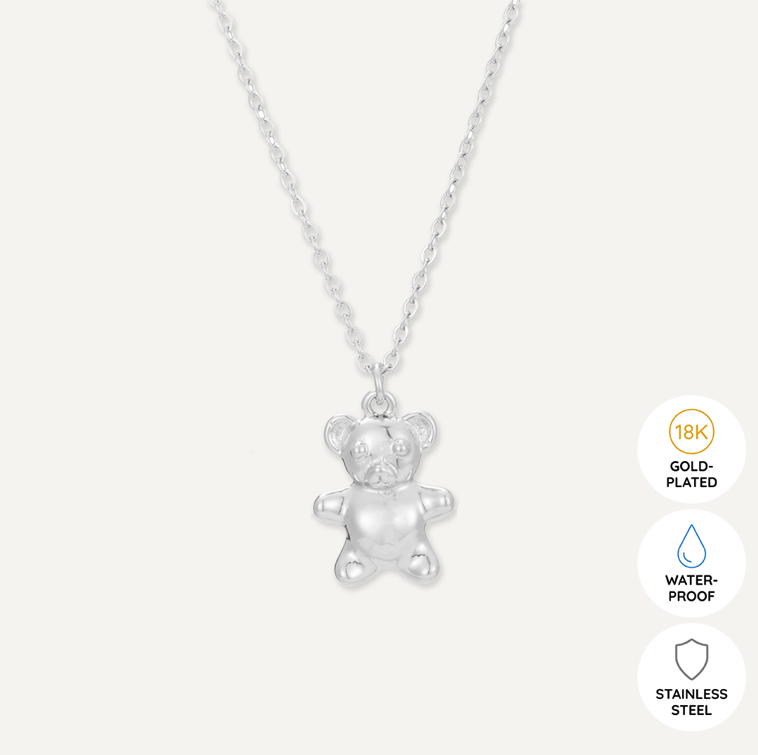 Memories: "BEAR HUG" | Bear Necklace | White Gold-Plated