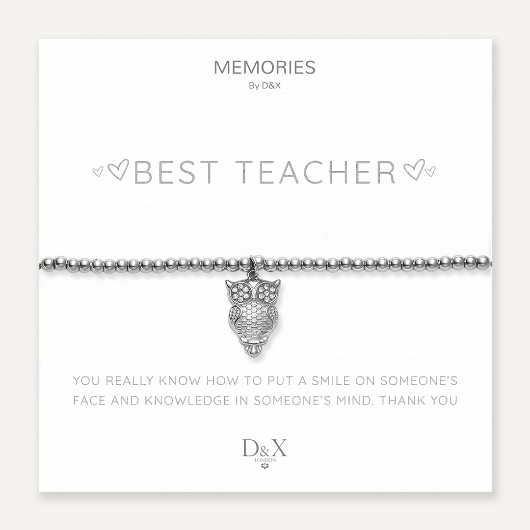 Memories: "BEST TEACHER" | Owl Bracelet | White Gold-Plated