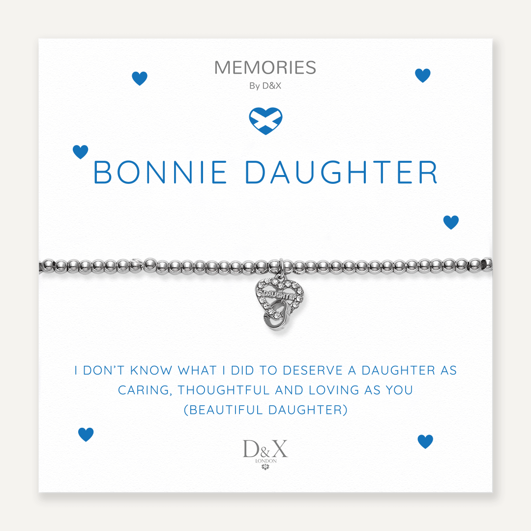 Memories: "BONNIE DAUGHTER" | Double Heart Bracelet | White Gold-Plated