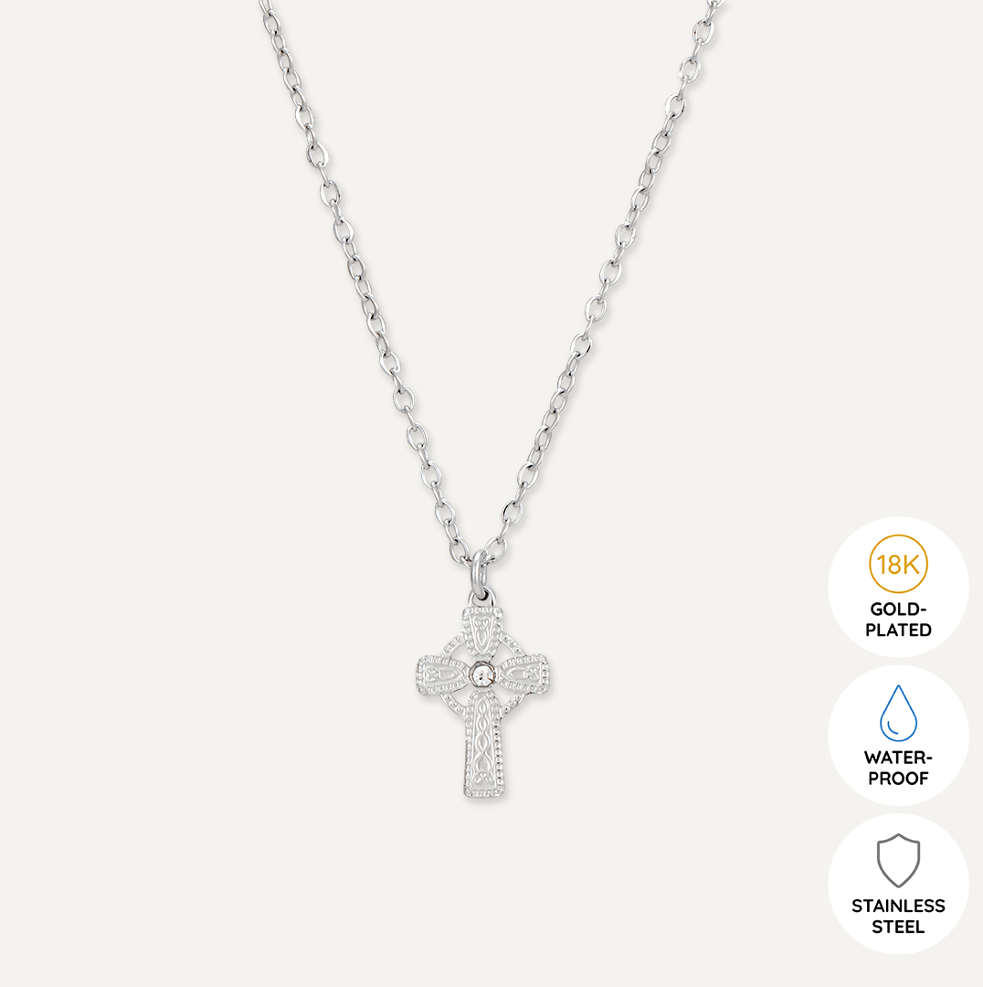 Memories: "CELTIC CROSS" | Cross Necklace | White Gold-Plated