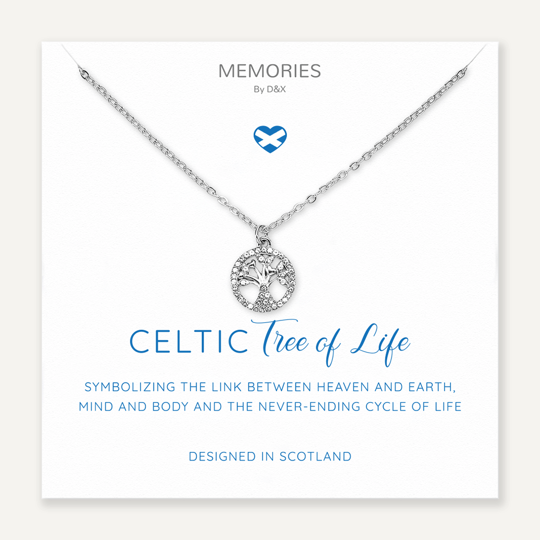 Embrace 'Celtic Tree of Life' through an enchanting white gold-plated necklace crafted with elegance, a symbol of 'Symbolizing the link between heaven and earth, mind and body and the never-ending cycle of life'.