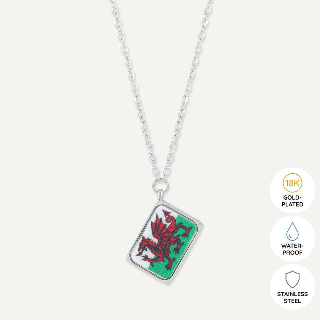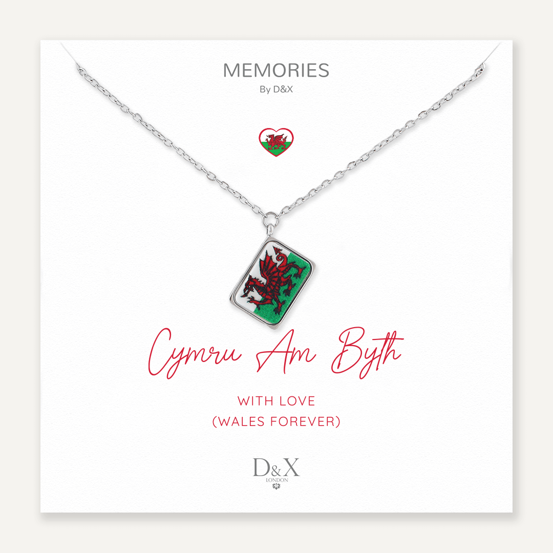 Memories: "CYMRU AM BYTH" | Welsh dragon Necklace | White Gold-Plated | Multi-Colour