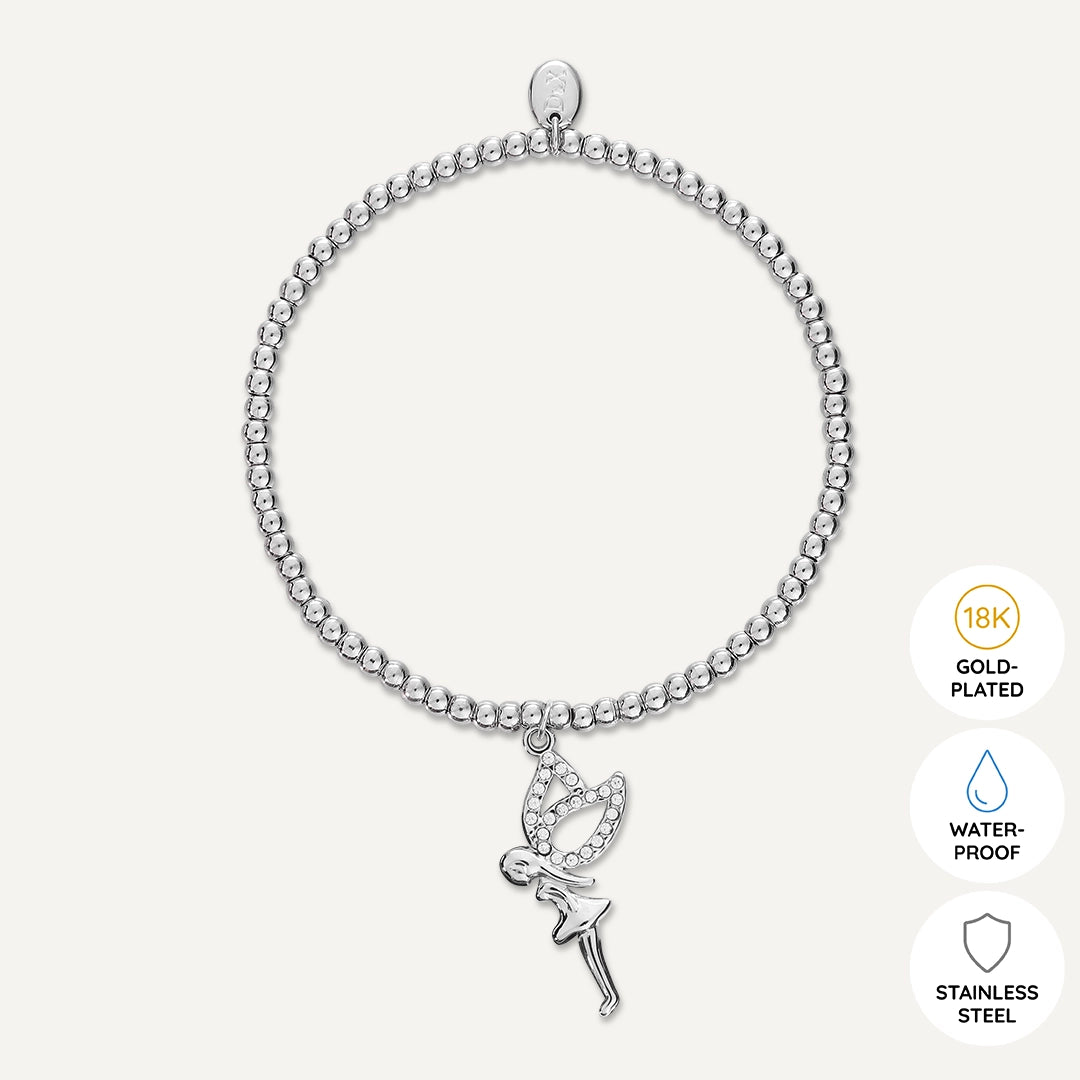Embrace Fairy Dust! through an enchanting bracelet crafted with elegance, a symbol of 'A little magical fairy just for you, believe in her powers and your dreams will come true!' in White Gold Plated