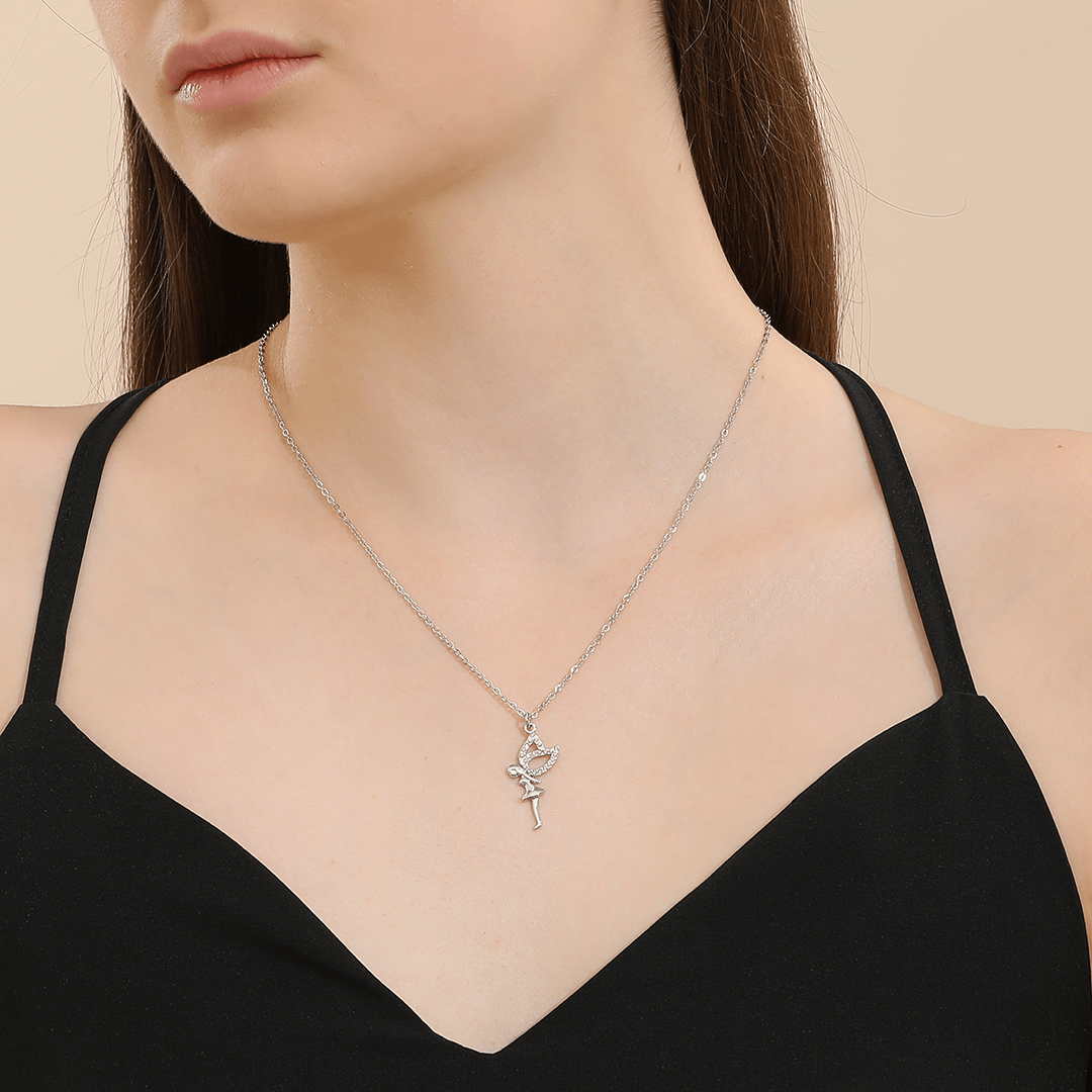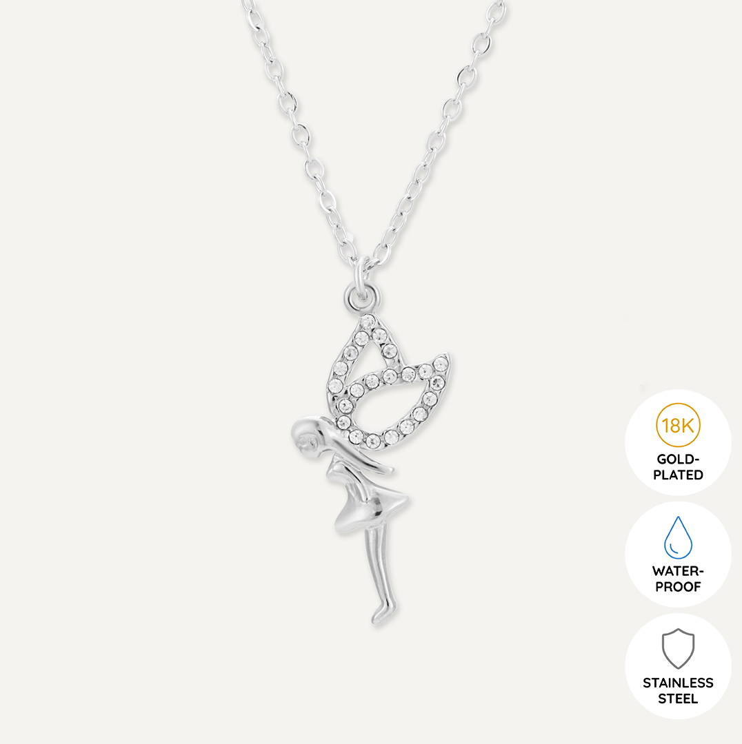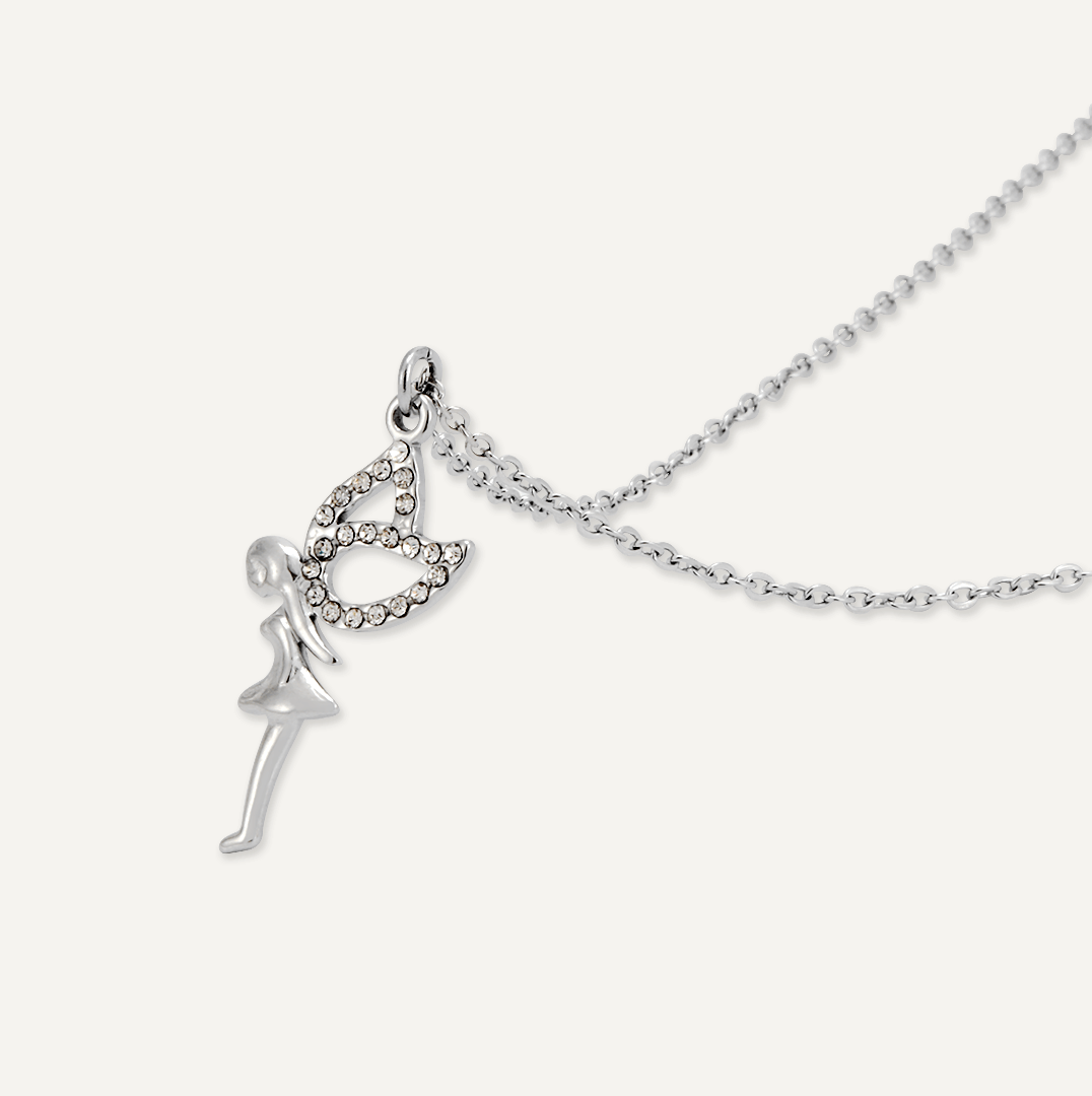 Embrace Fairy Dust! through an enchanting necklace crafted with elegance, a symbol of 'A little magical fairy just for you, believe in her powers and your dreams will come true!' in White Gold Plated