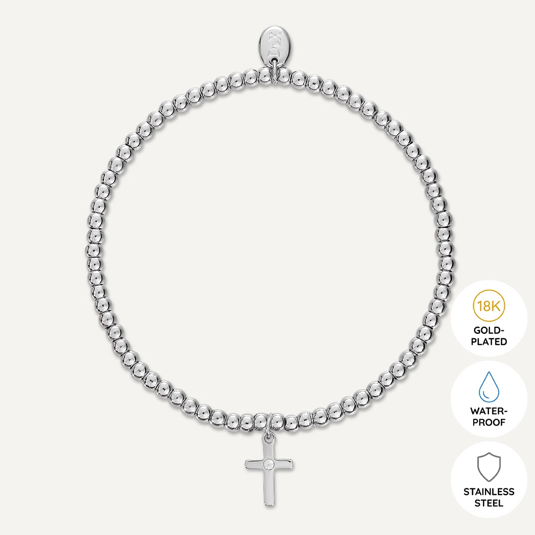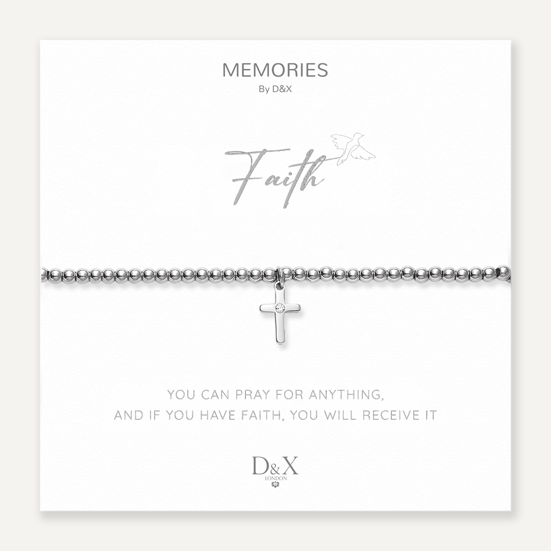Memories: "FAITH" | Cross Bracelet | White Gold-Plated