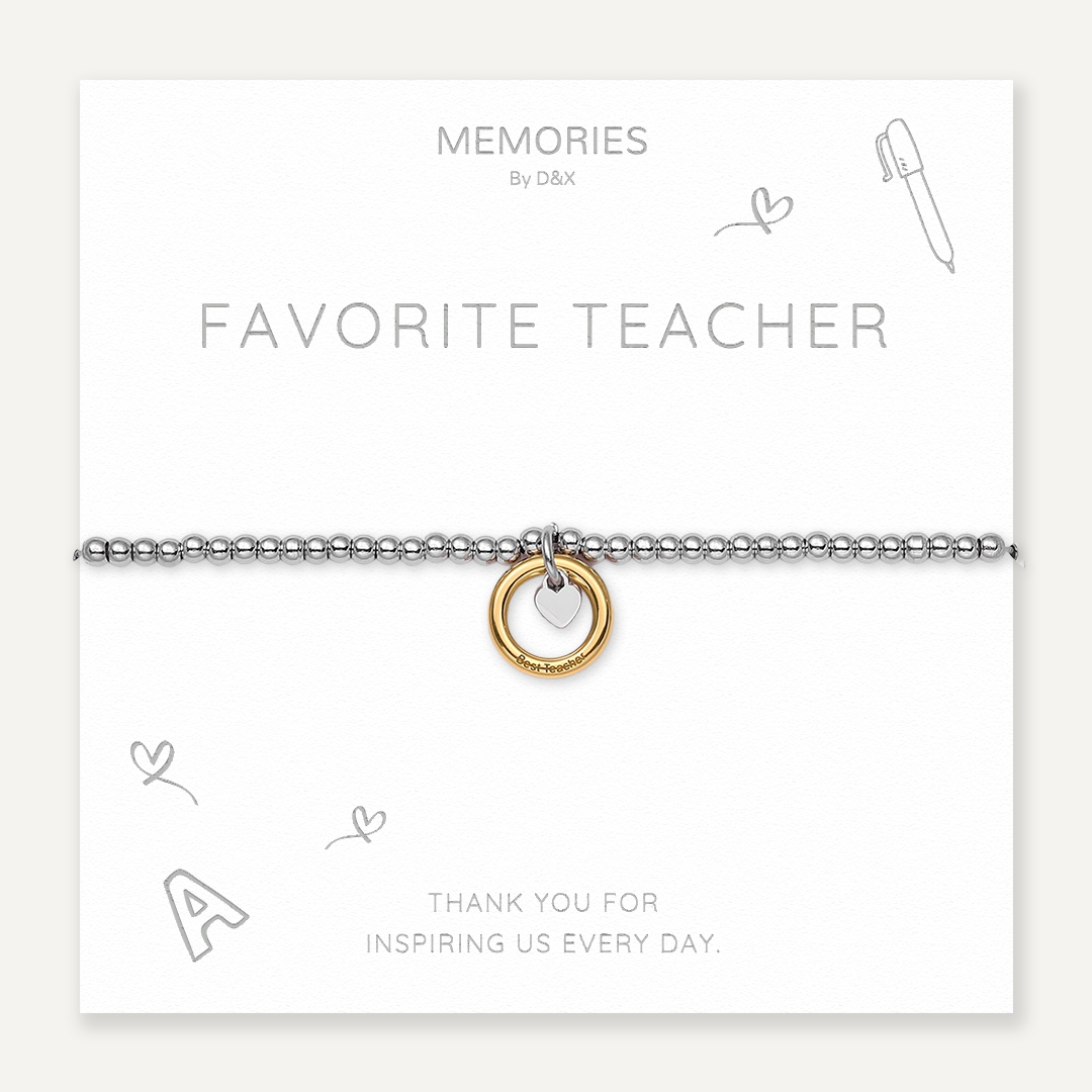 Memories: " FAVORITE TEACHER" | Heart Bracelet | White Gold & 18K Gold-Plated