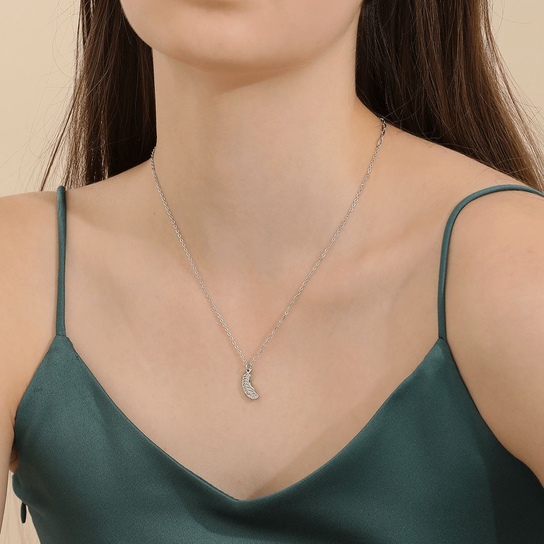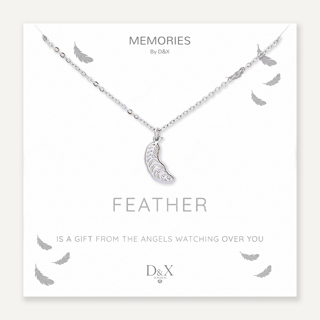 Memories: "FEATHER" | Feather Necklace | White Gold-Plated