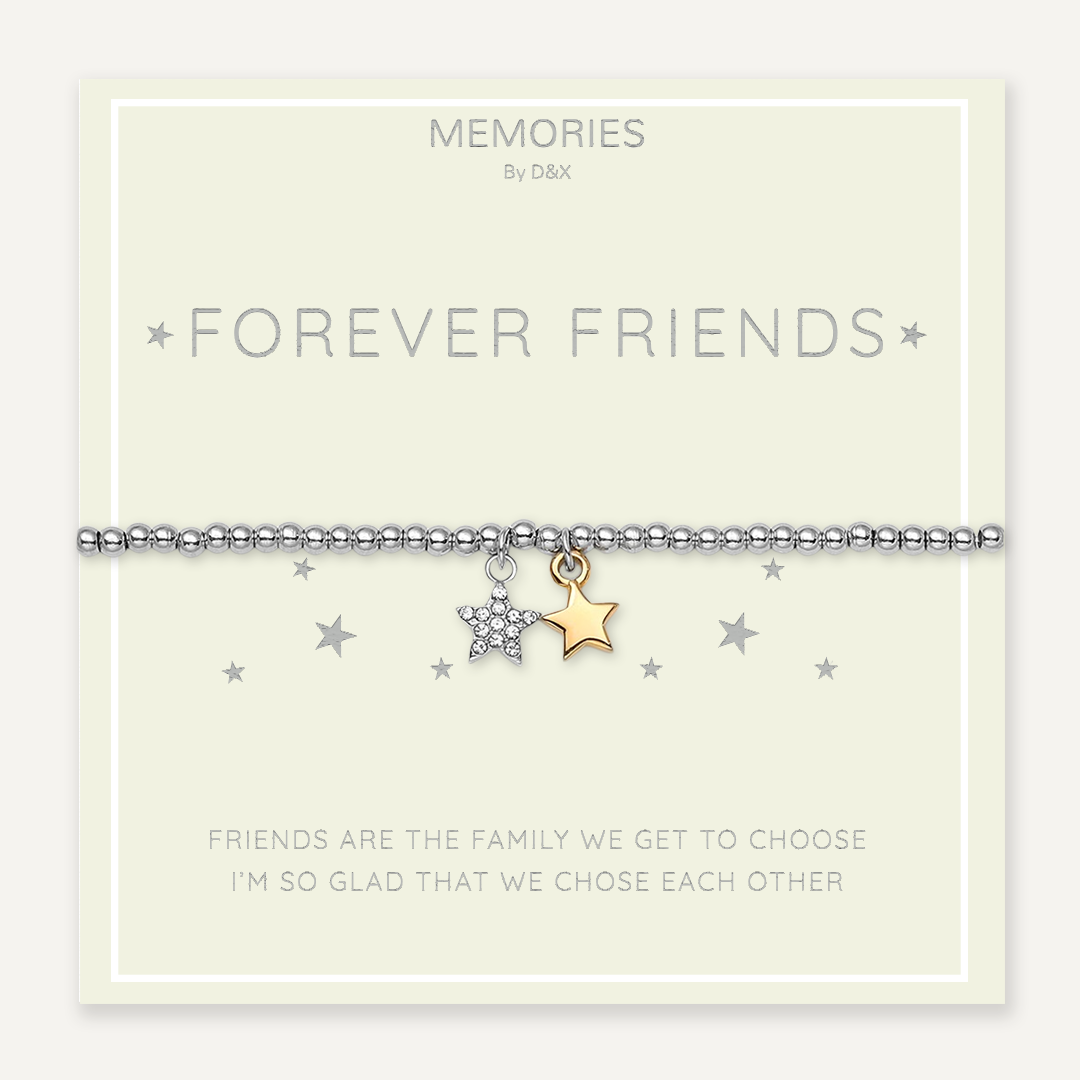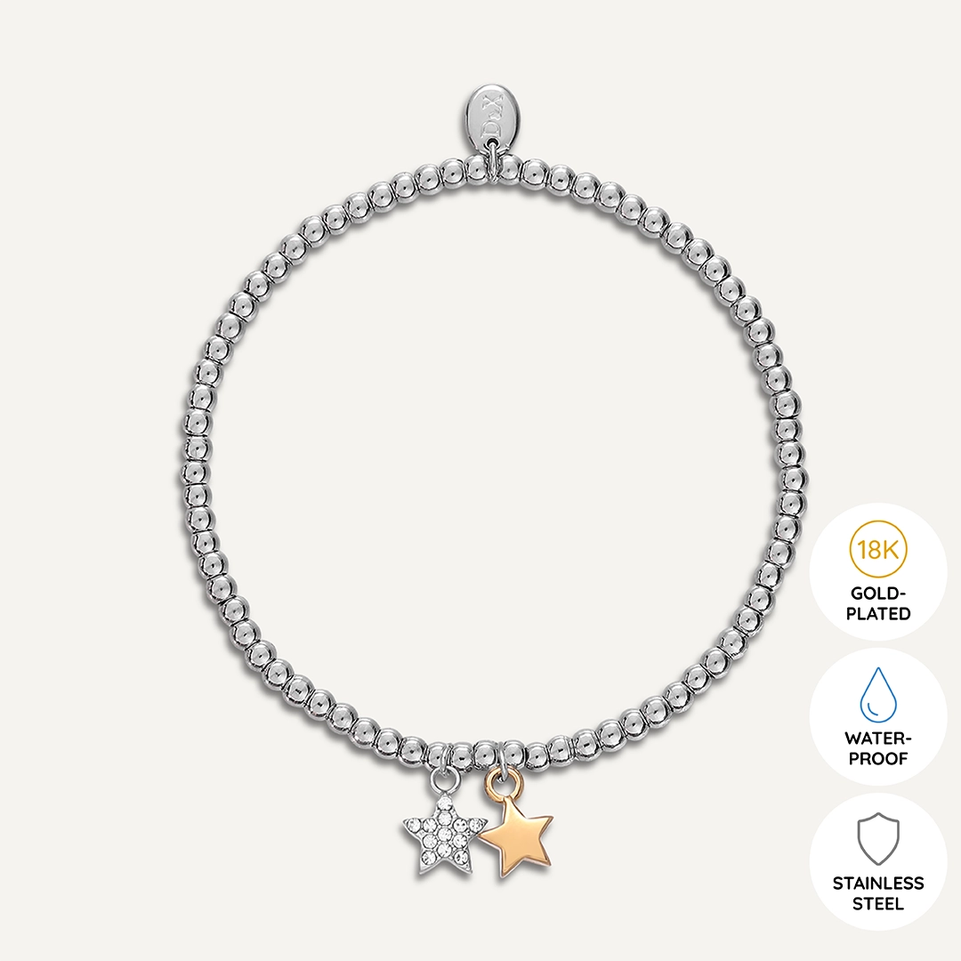 Memories: "FOREVER FRIENDS" | Two Star Bracelet | White Gold & 18K Gold-Plated