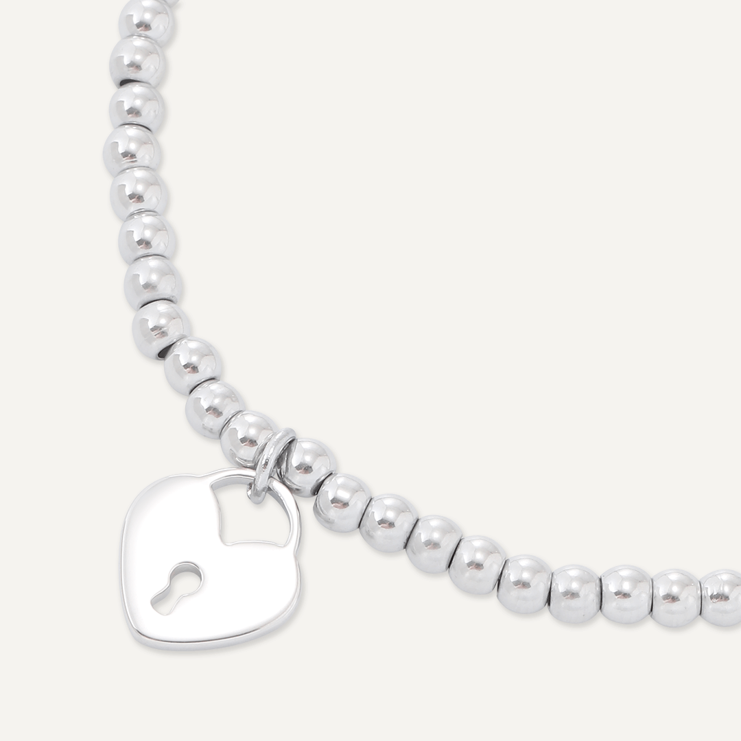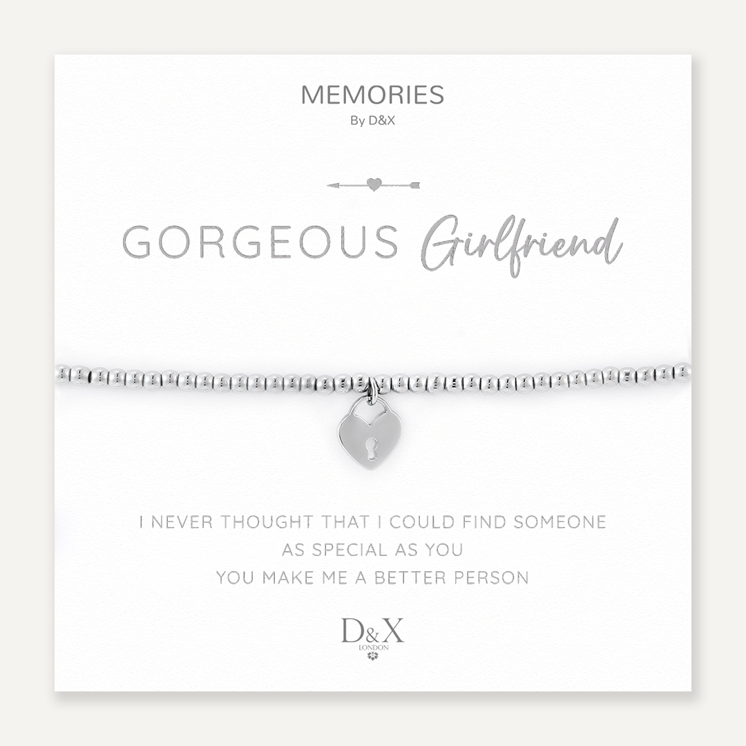 Memories: "GORGEOUS GIRLFRIEND" | Heart Lock Bracelet | White Gold-Plated