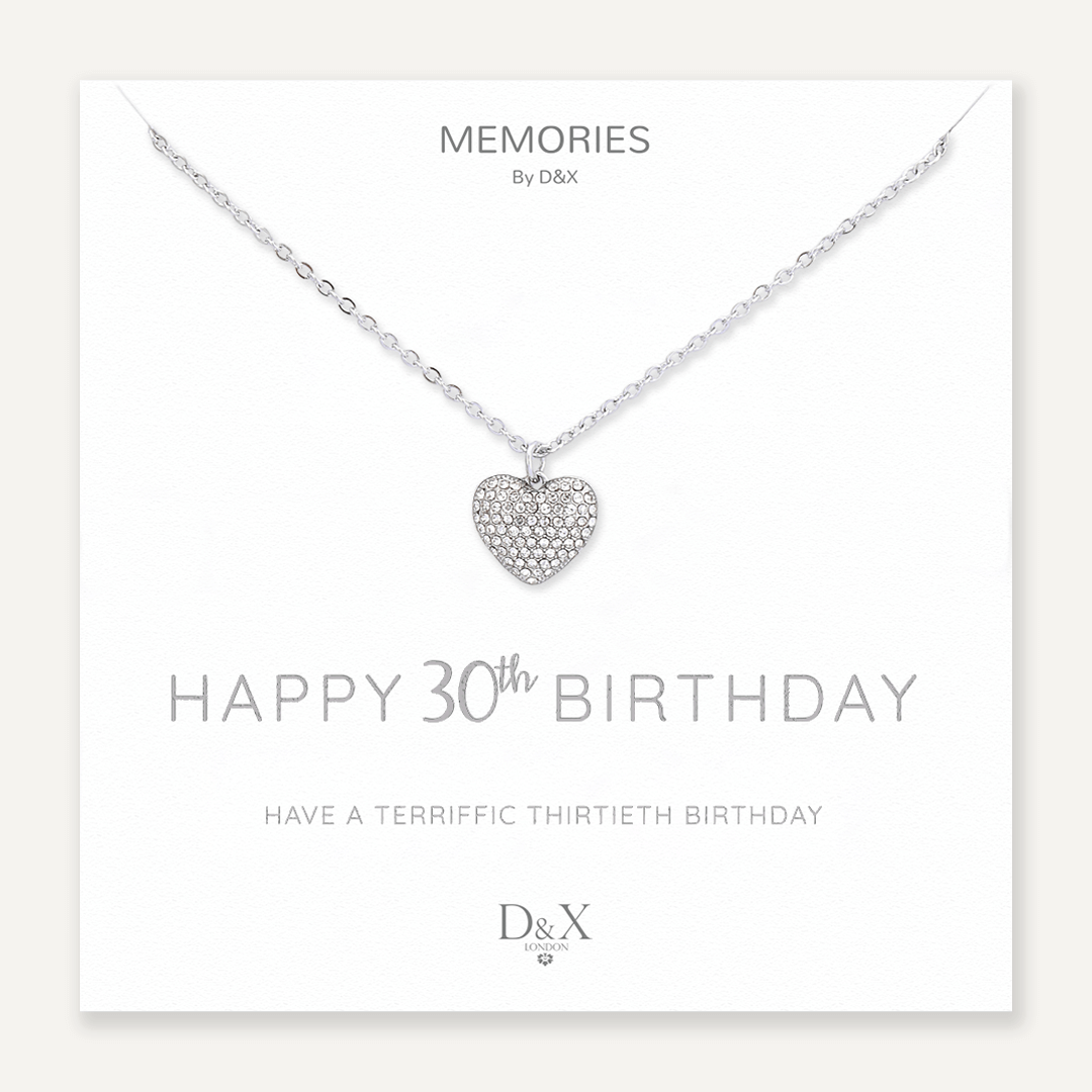 Memories: "HAPPY 30TH BIRTHDAY" | Heart Necklace | White Gold-Plated