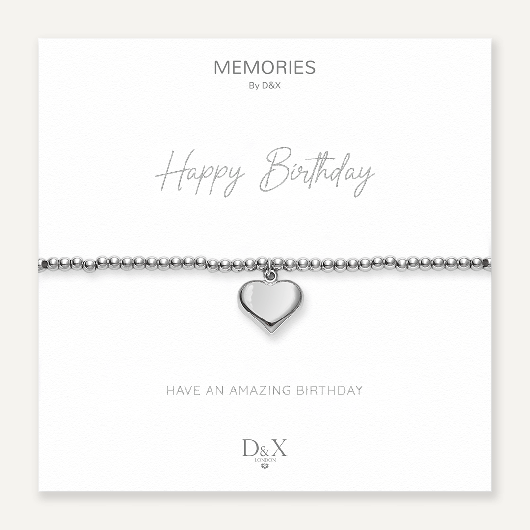 Memories: "HAPPY BIRTHDAY" | Heart Bracelet | White Gold-Plated