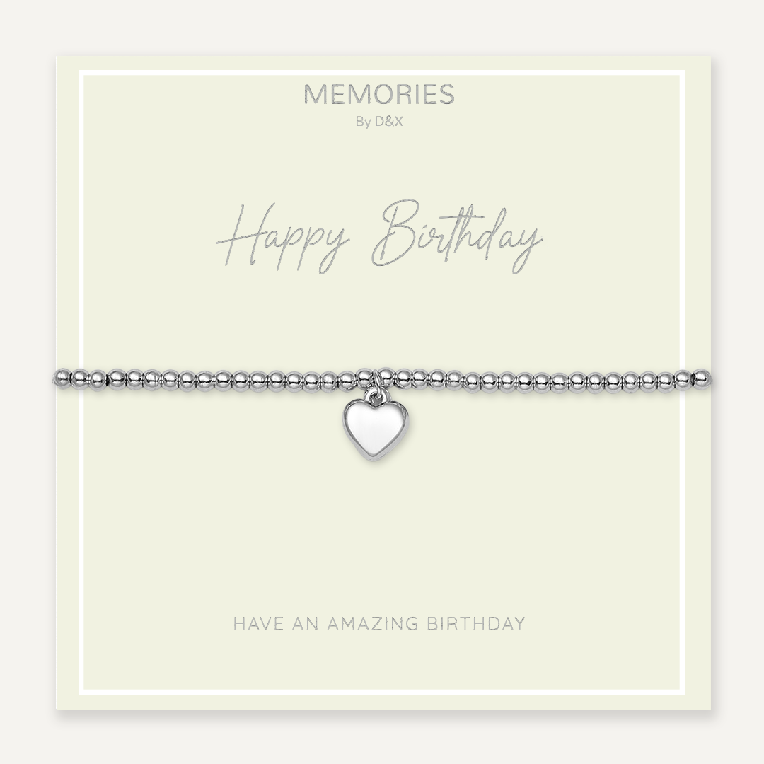Memories: "HAPPY BIRTHDAY" | Heart Bracelet | White Gold-Plated