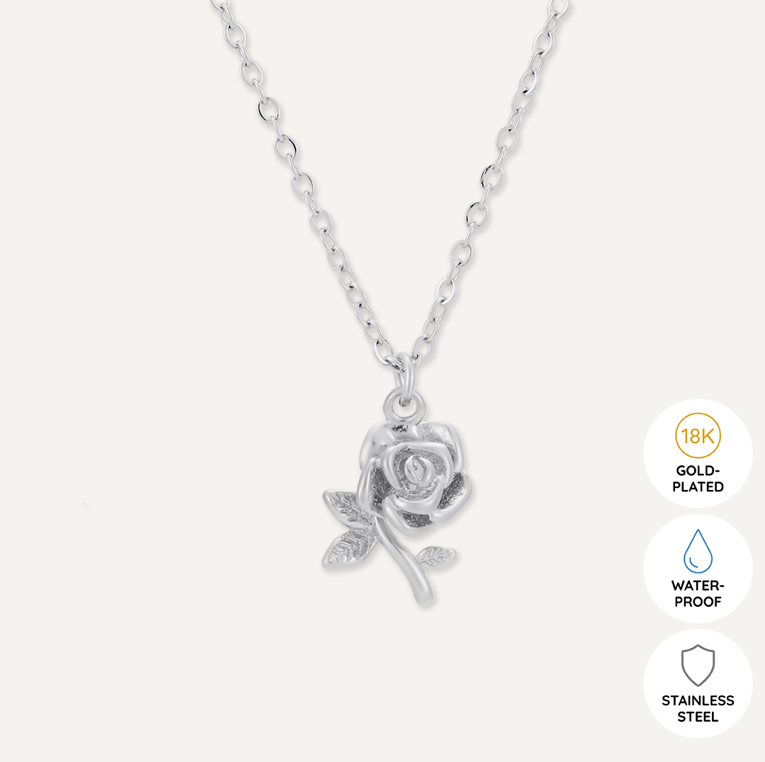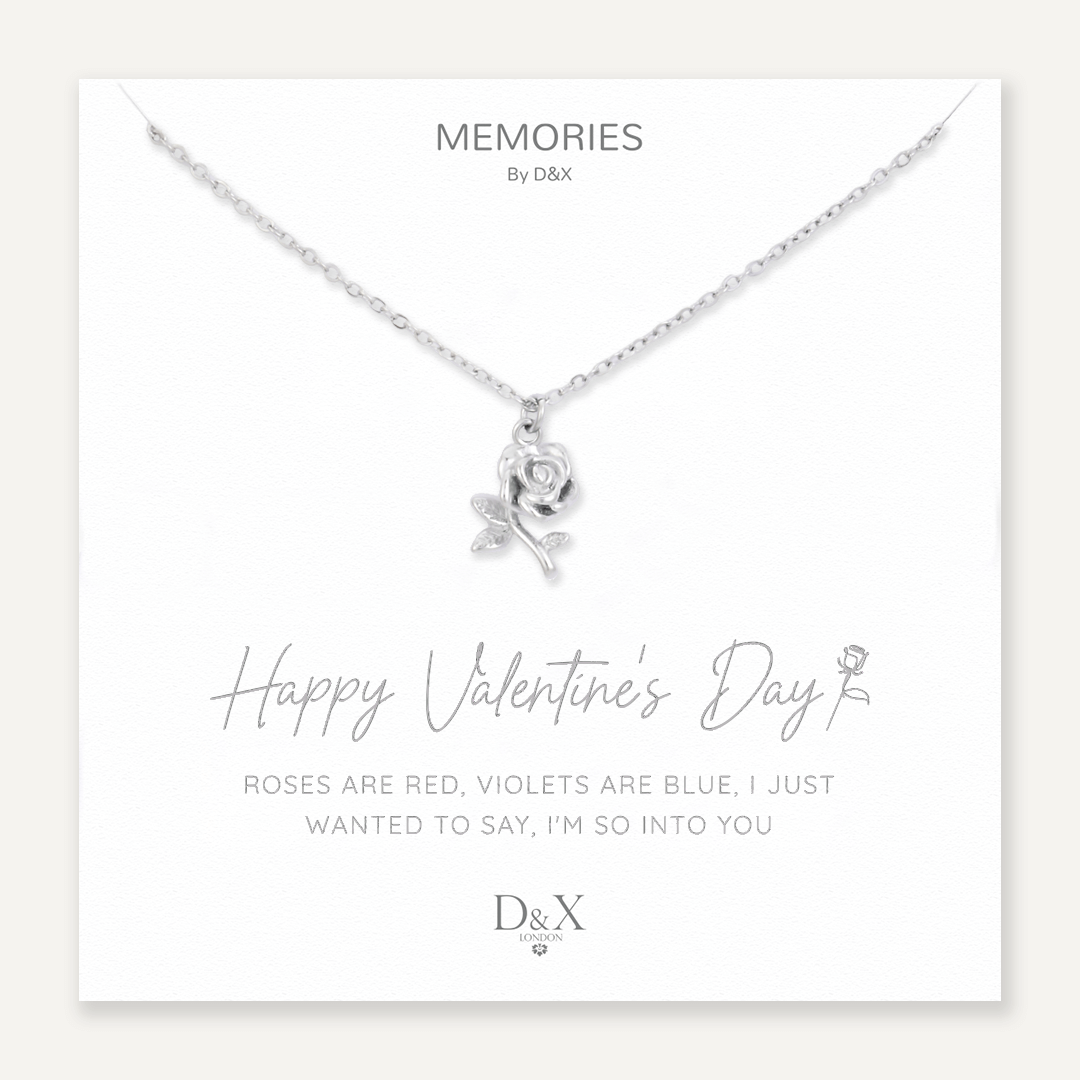 Memories: "HAPPY VALENTINE'S DAY" | Rose Necklace | White Gold-Plated