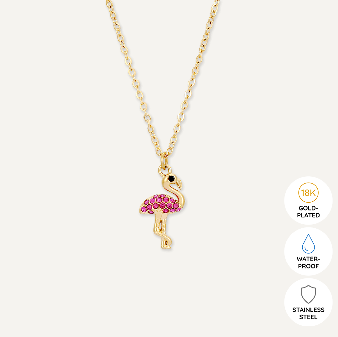 Memories: "HAVE A FLAMINGOOD TIME" | Flamingo Necklace | 18K Gold-Plated