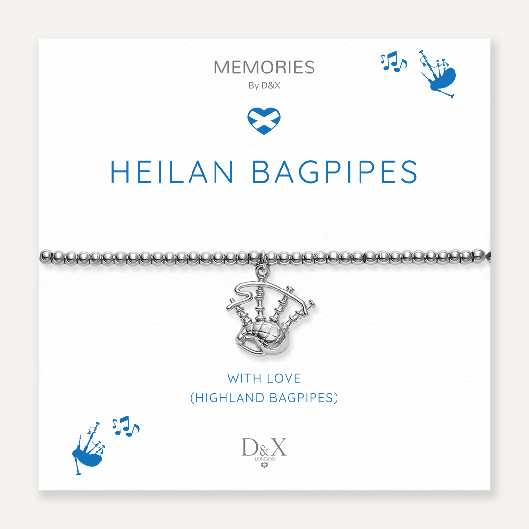 Memories: "HEILAN BAGPIPES" | Bagpipes Bracelet | White Gold-Plated