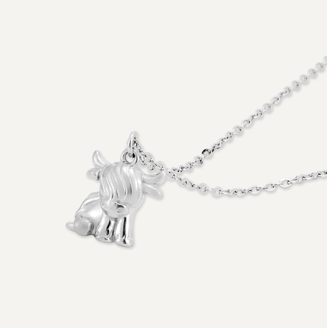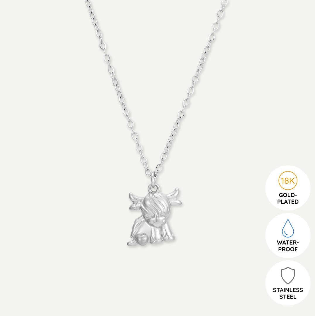 Memories: "HEILAN COO" | Cow Necklace | White Gold-Plated