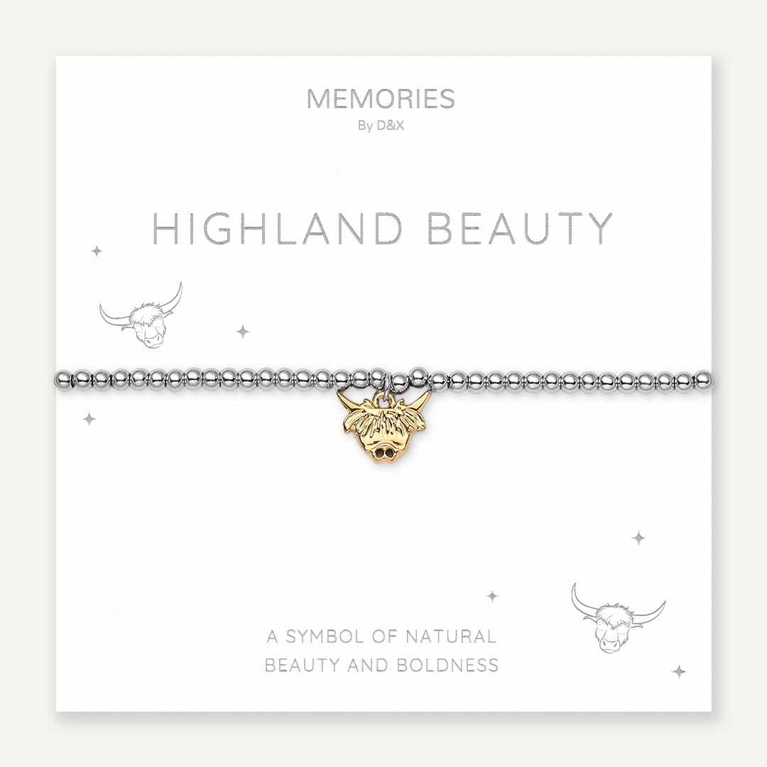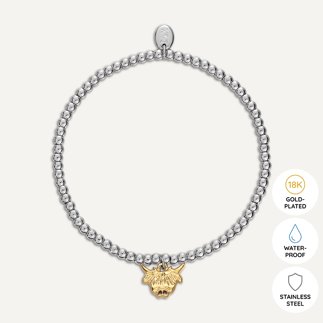 Memories: "HIGHLAND BEAUTY" | Highland Cow Bracelet | White Gold & 18K Gold-Plated