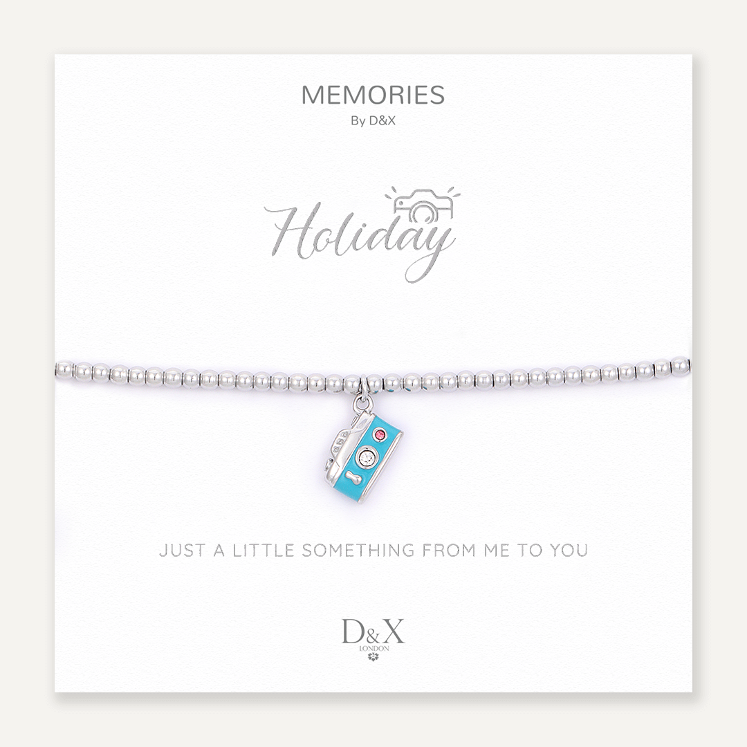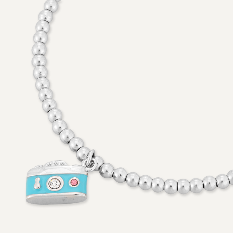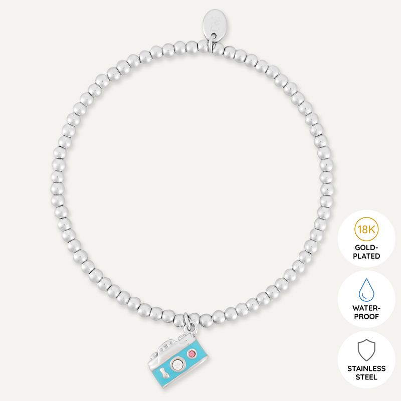 Memories: "HOLIDAY" | Camera Bracelet | White Gold-Plated | Multi-Colour