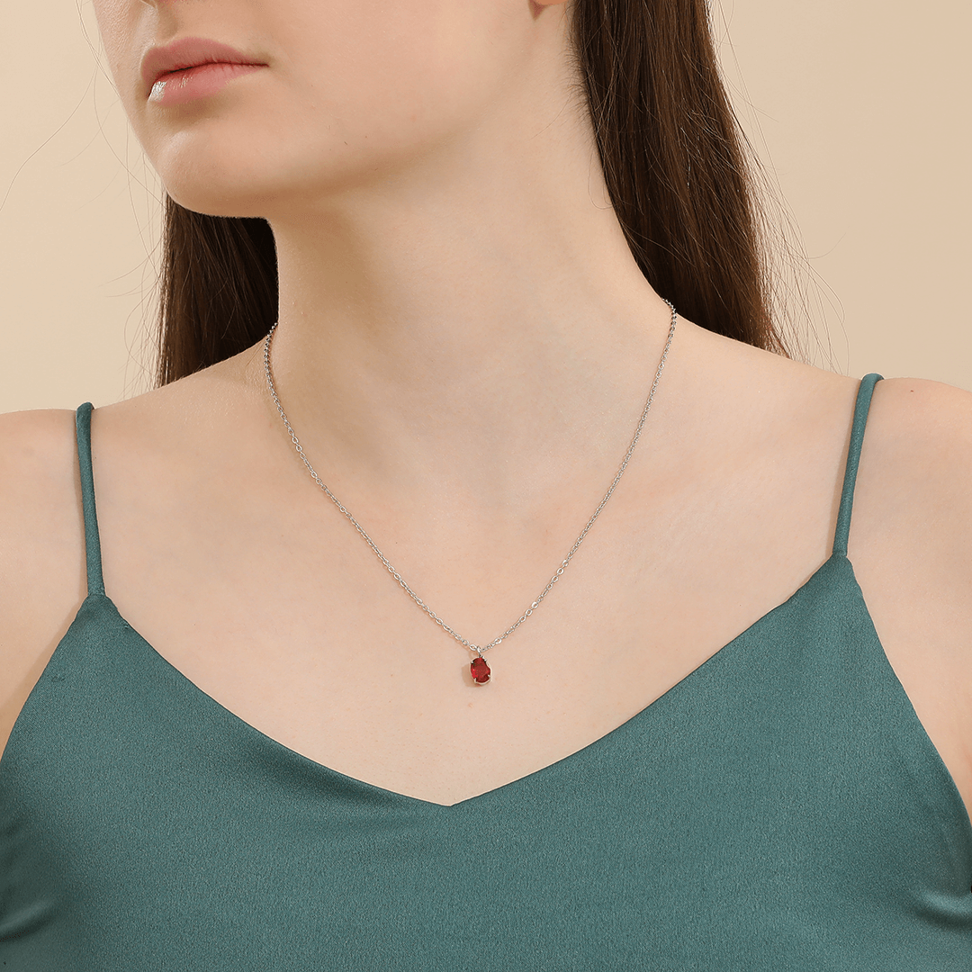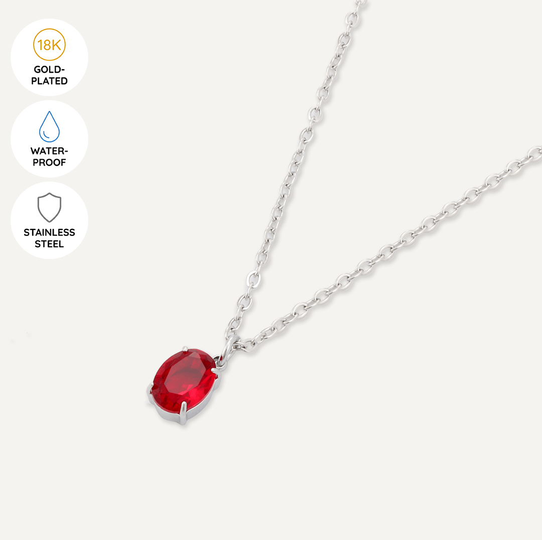 Memories: "JULY" | Ruby Necklace | White Gold-Plated