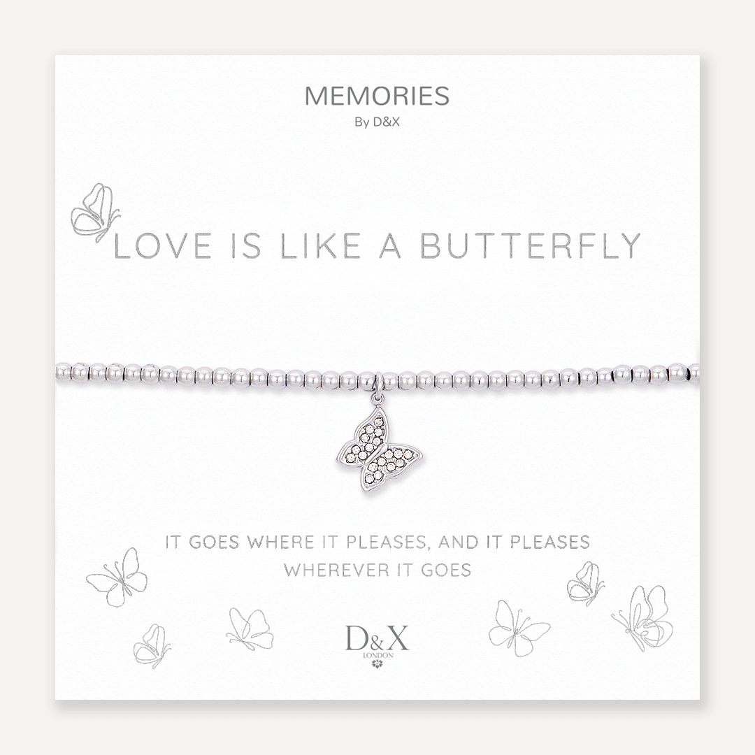 Memories: "LOVE IS LIKE A BUTTERFLY" | Butterfly Bracelet | White Gold-Plated