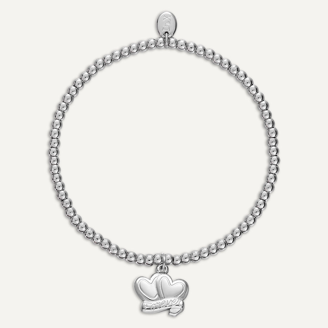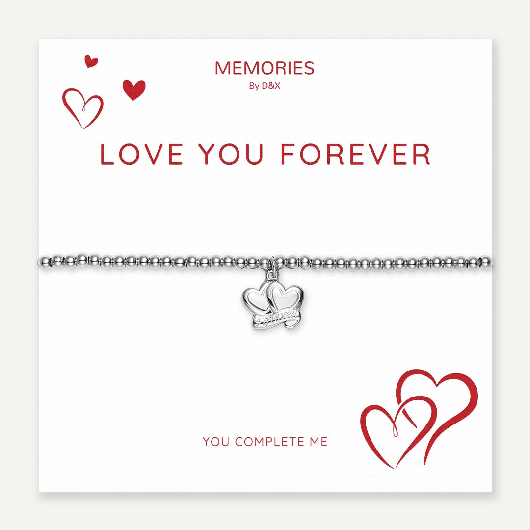 Memories: "LOVE YOU FOREVER" | Two Heart Bracelet | White Gold-Plated