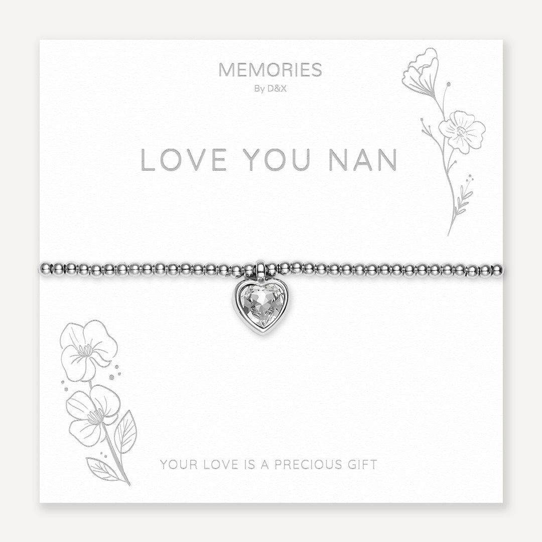 Memories: "LOVE YOU NAN" | Heart Bracelet | White Gold-Plated