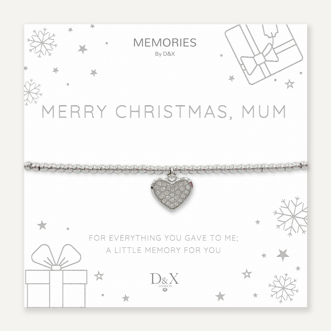 Memories: "MERRY CHISTMAS, MUM" | Heart Bracelet | White Gold Plated