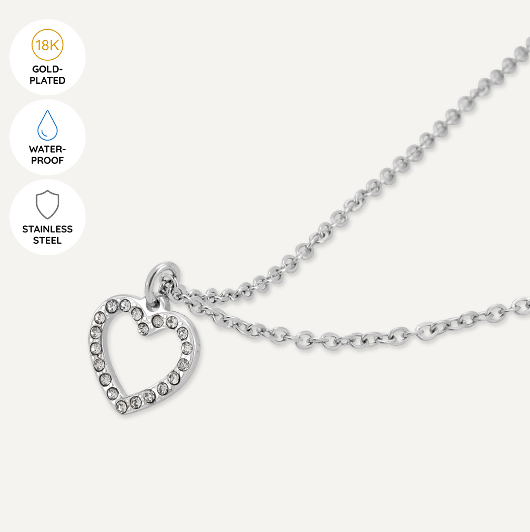Memories: "MISS YOU" | Heart Necklace | White-Gold-Plated