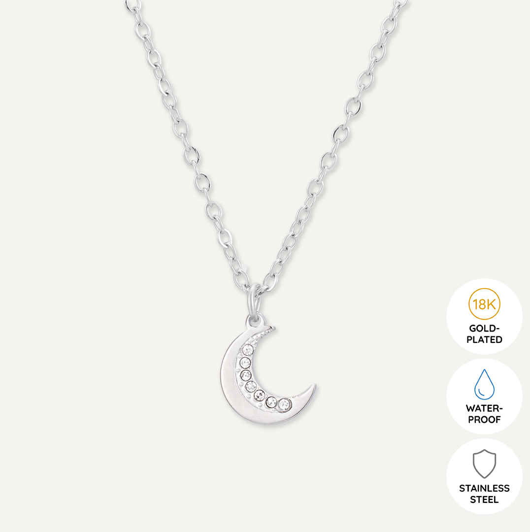 Memories: "MOONSTRUCK" | Moon Necklace | White Gold-Plated