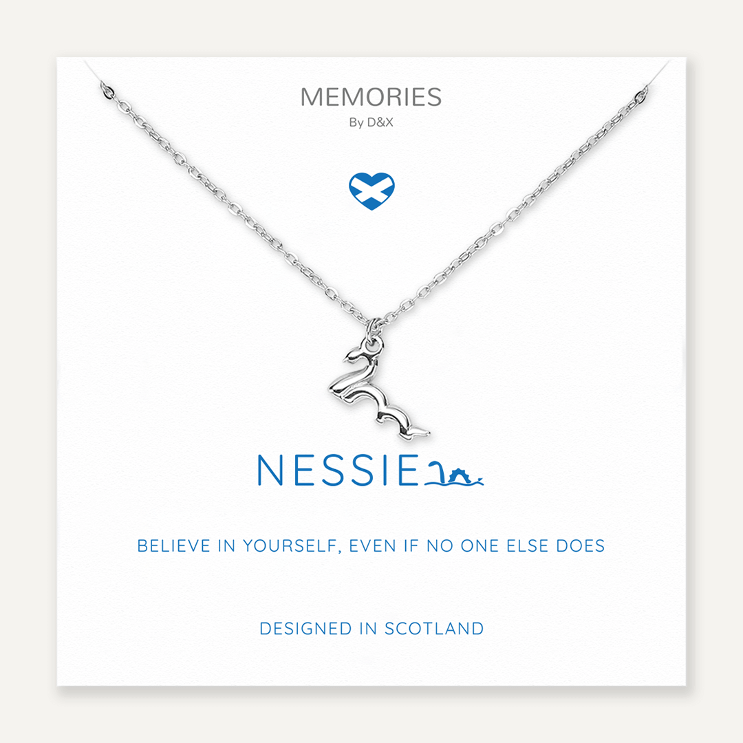 Embrace 'Nessie' through an enchanting white gold-plated necklace crafted with elegance, a symbol of 'Believe in yourself, even if no one else does'.
