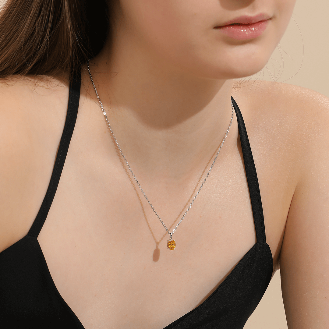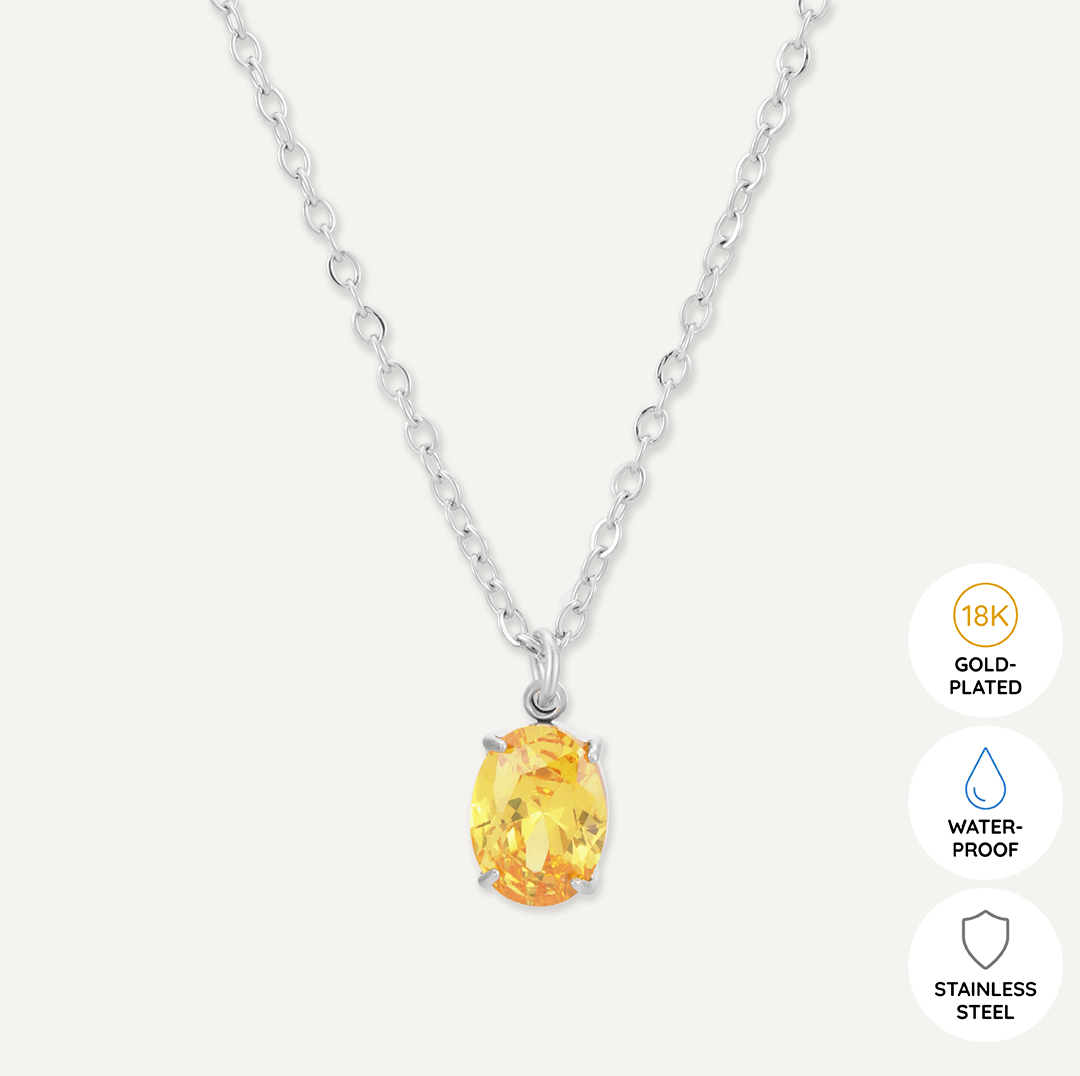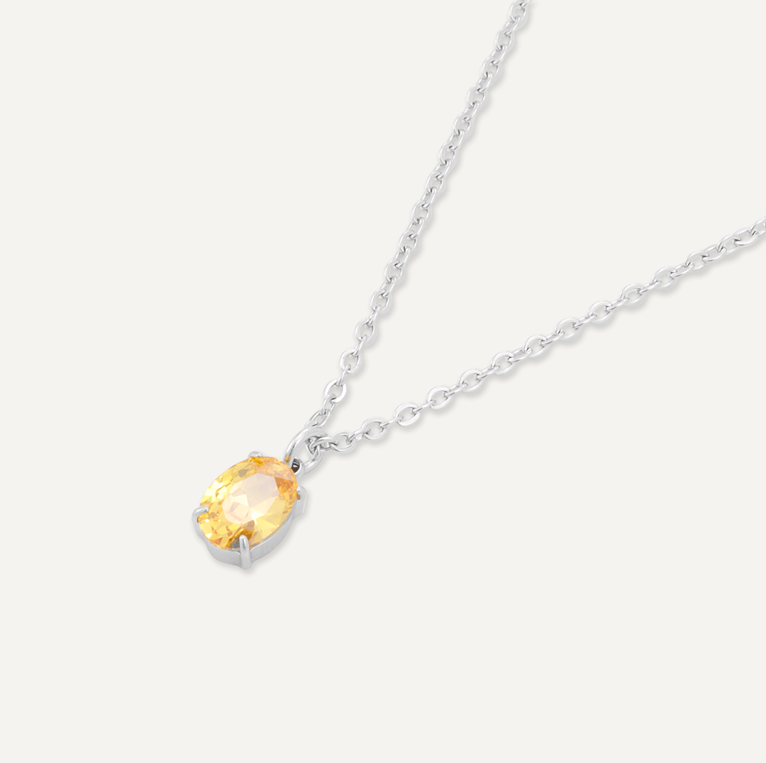 Memories: "NOVEMBER" | Citrine Necklace | White Gold-Plated