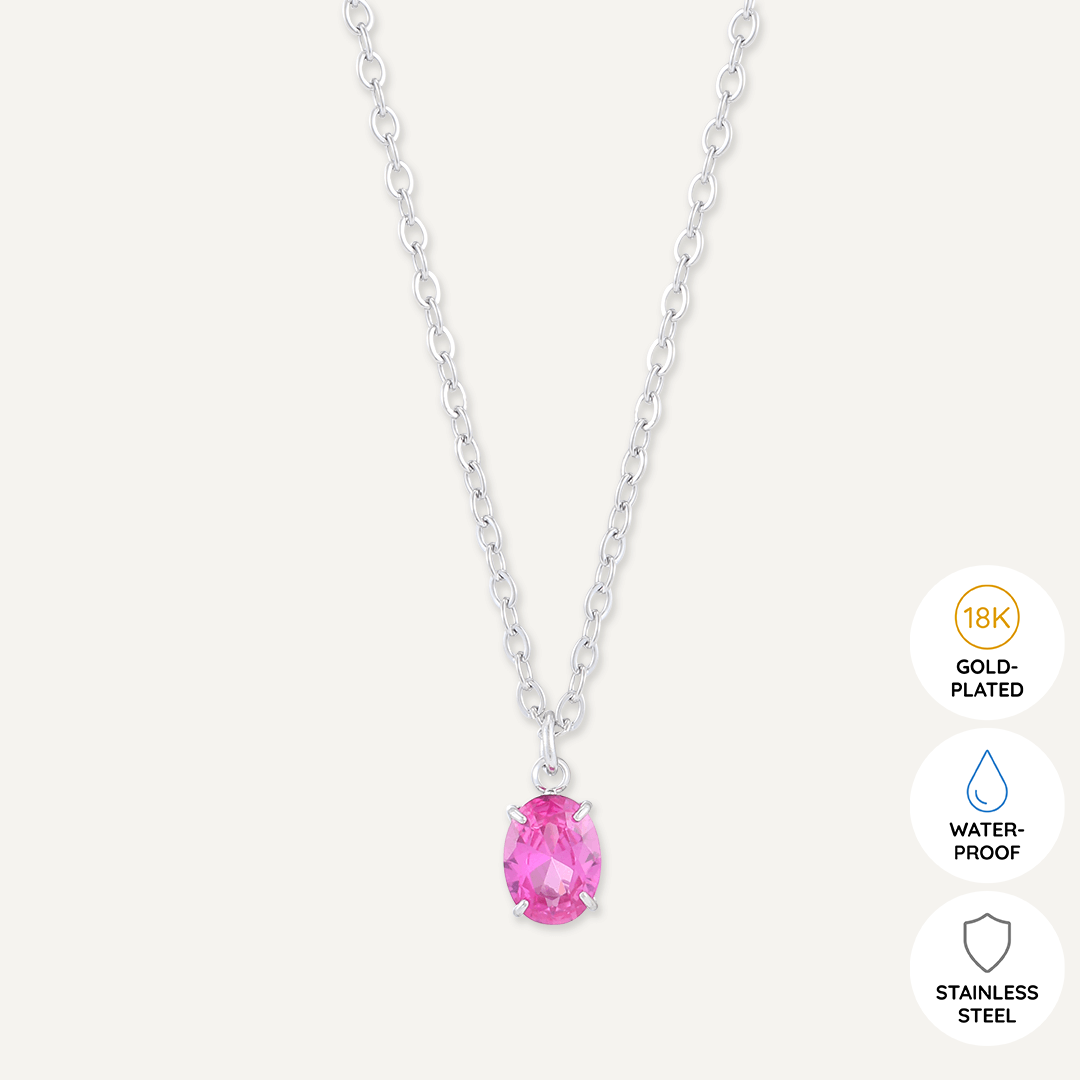 Memories: "OCTOBER" | Tourmaline Necklace | White Gold-Plated