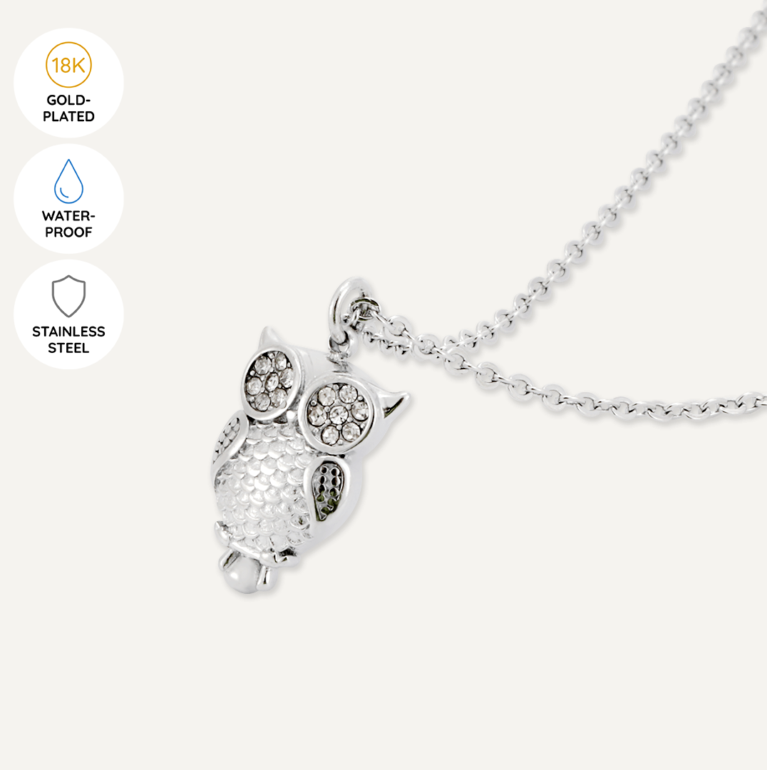 Memories: "OWL…" | Owl Necklace | White Gold-Plated