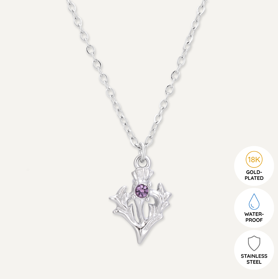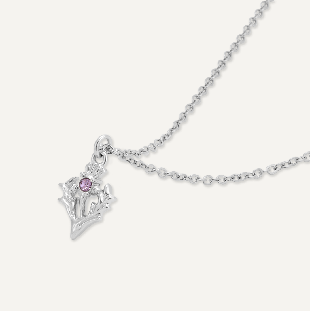 Memories: "SCOTTISH THISTLE" | Flower Necklace | White Gold-Plated