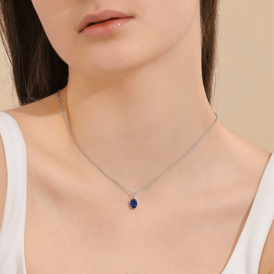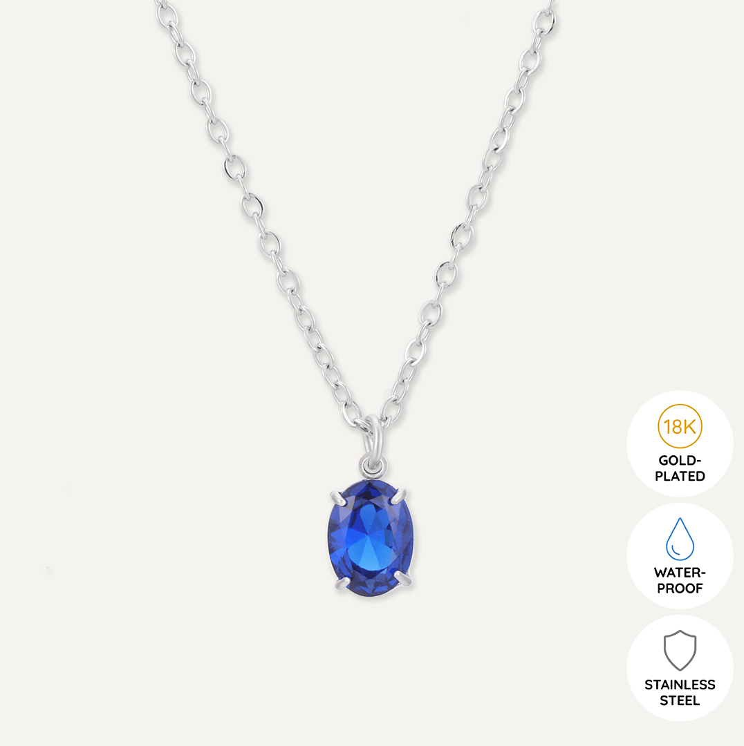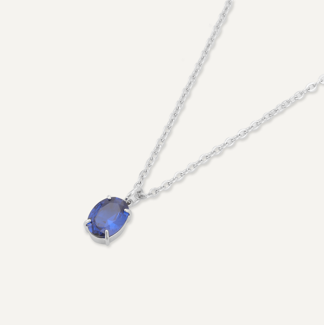 Memories: "SEPTEMBER" | Sapphire Necklace | White Gold-Plated