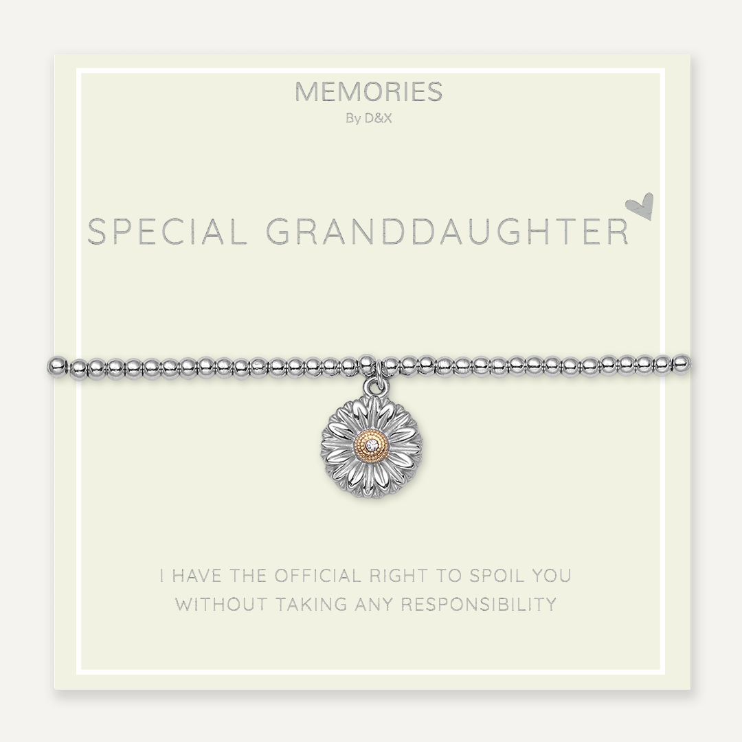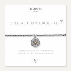 Memories: "SPECIAL GRANDDAUGHTER" | Flower Bracelet | White Gold-Plated | Multi-Colour